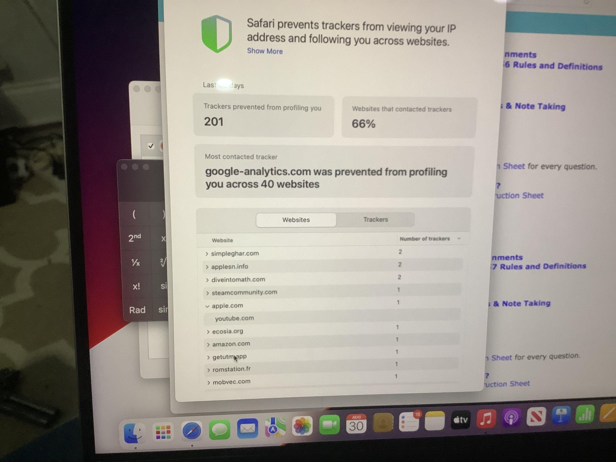Visit Apple.com using Safari. No trackers are shown.