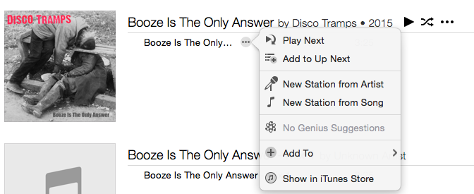 local playlists? (Also, Apple is using two types of playlists now, pre-made Apple Music playlists and your own local playlists, yet another confusing aspect of Apple Music.) The dotted menu is adding additional complexity to what the context menu is doing elsewhere on OS X and they screw this up in particular in My Music, but they also don’t use it well while you browse For You or New (like I explained above).