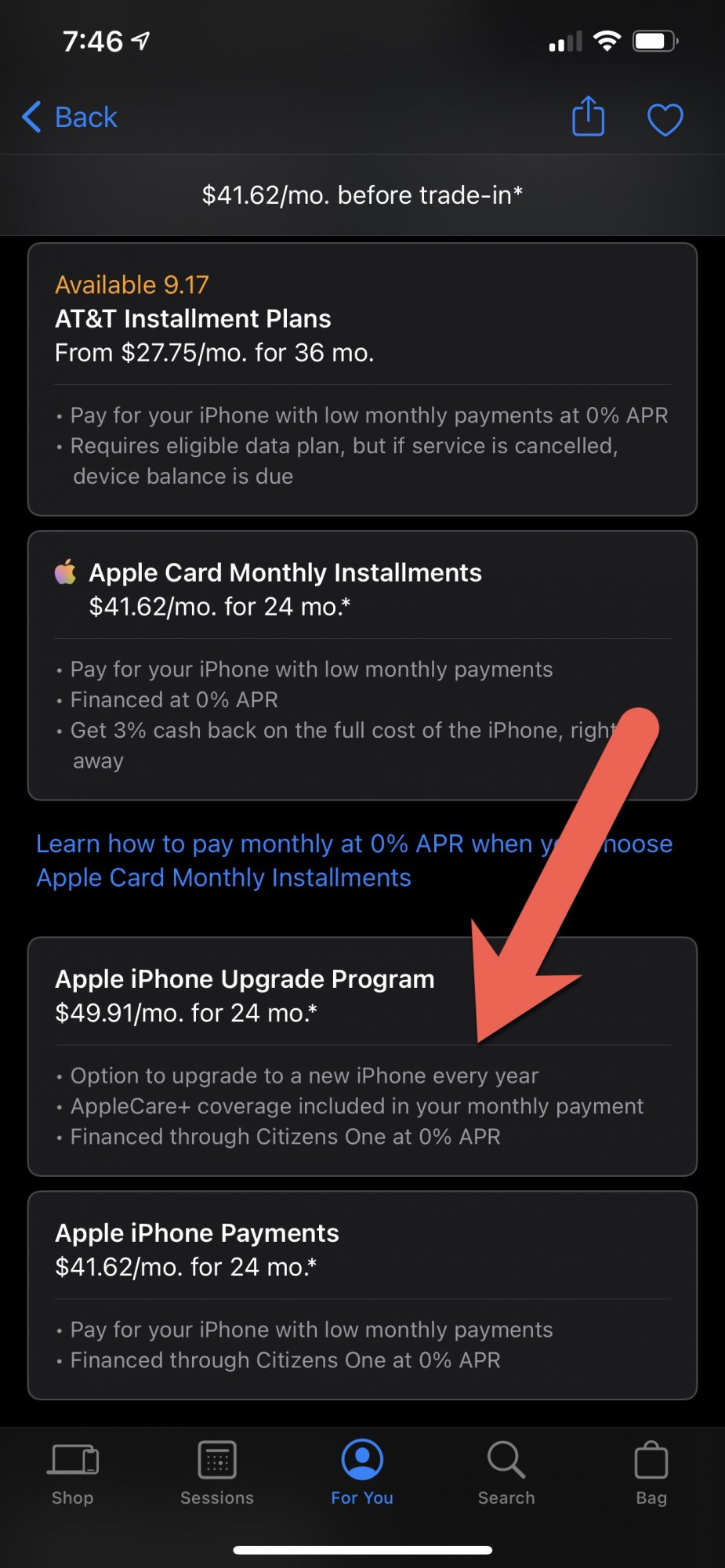 Currently on IUP, and just completed the steps in the "For You" section on the app. But none of the steps seem to indicate that what I just did was part of the IUP? It shows 24 months payment via Apple Card. I said "no" for trade-in.