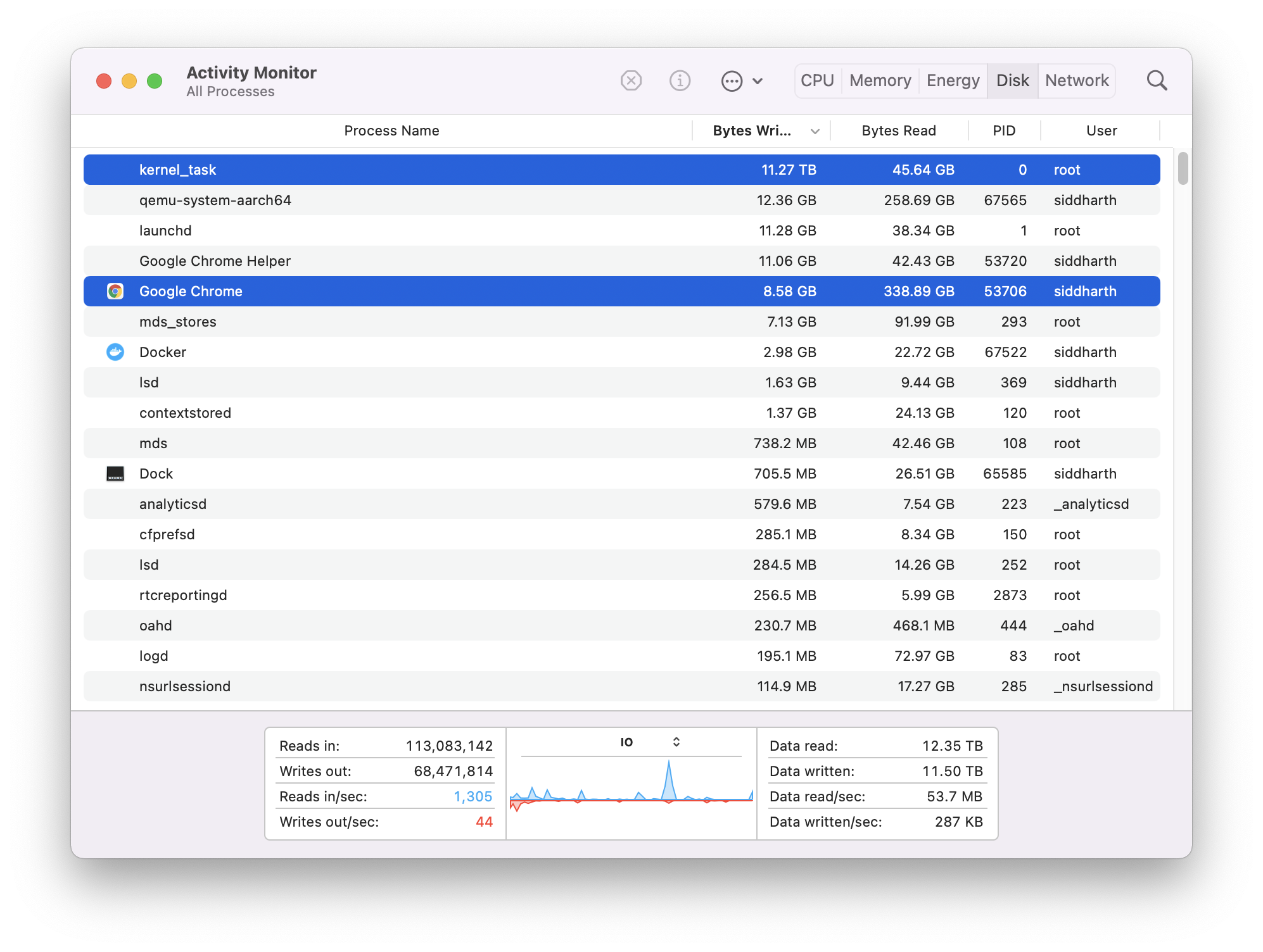 I think I will have to disagree when it comes to swap.Sure - Atm. 172 TB written and 171 TB read. As you can see the memory pressure is green, but I can assure you that performance with this amount of swap is not identical to a the same computer running a lower workload with very limited swap. thats why it's useless advice when somebody asks you to check your memory pressure - It doesn't really show how heavy the load on the system is.