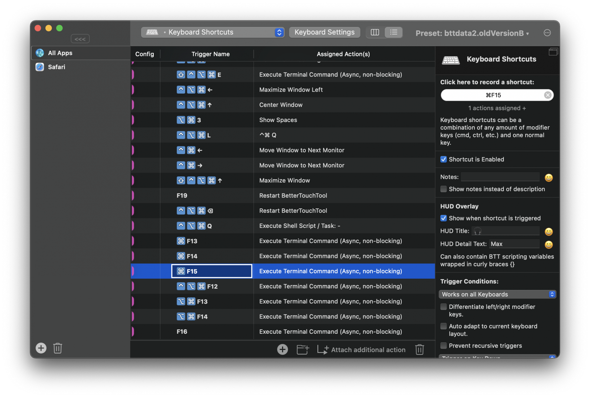 BetterTouchTool has a nice option to set a HUD overlay that confirms the little script is being executed. I've set my HUD title to the headphones emoji 🎧 and the HUD Detail Text to "Max".