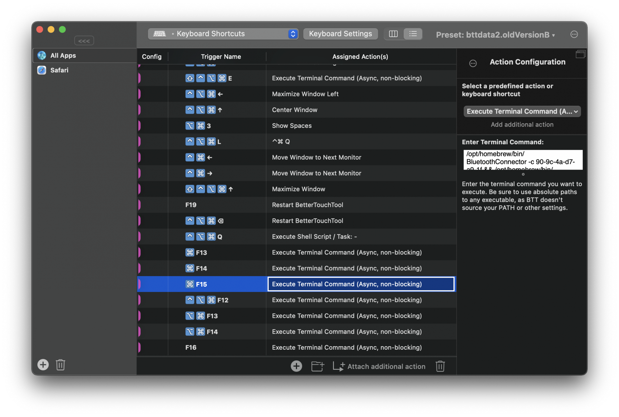 In that, there are two or three things to modify: the Bluetooth address of the headphones, and the name of the headphones inside quotes. If you have an Intel Mac, the path will be /usr/local/bin and not /opt/homebrew/bin./opt/homebrew/bin/BluetoothConnector -c aa-bb-cc-dd-ee-ff && /opt/homebrew/bin/SwitchAudioSource -s "🎧 Max"