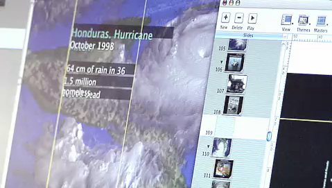So I was just watching MSNBC and they were talking about the new movie that deals with global warming issues (hopefully better then The Day After Tomorrow did). Then they kept looping this clip of someone (clearly) using Keynote to make a presentation on global warming. I know macs are always in movies/shows, but this is the first time I have seen an iapp being featured in a film. After just watching the movie trailer online, I took a couple screenshots. The footage they showed on MSNBC was about a 30 second long close up of Keynote.