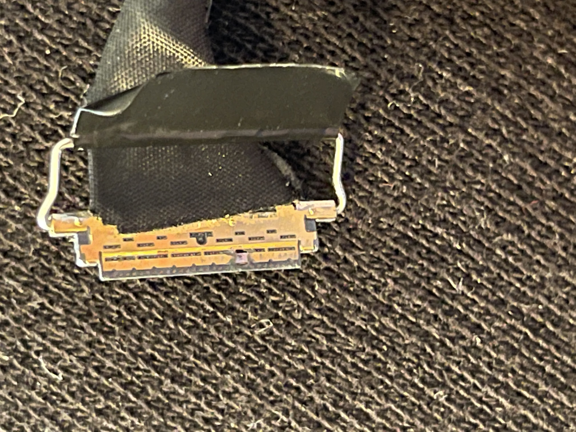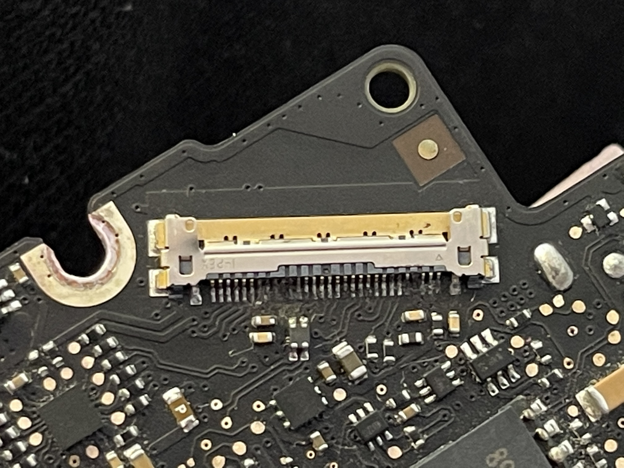Initially, the logic board looks good - no burn marks. Below is pictures of the video cable and the contact on the logic board.