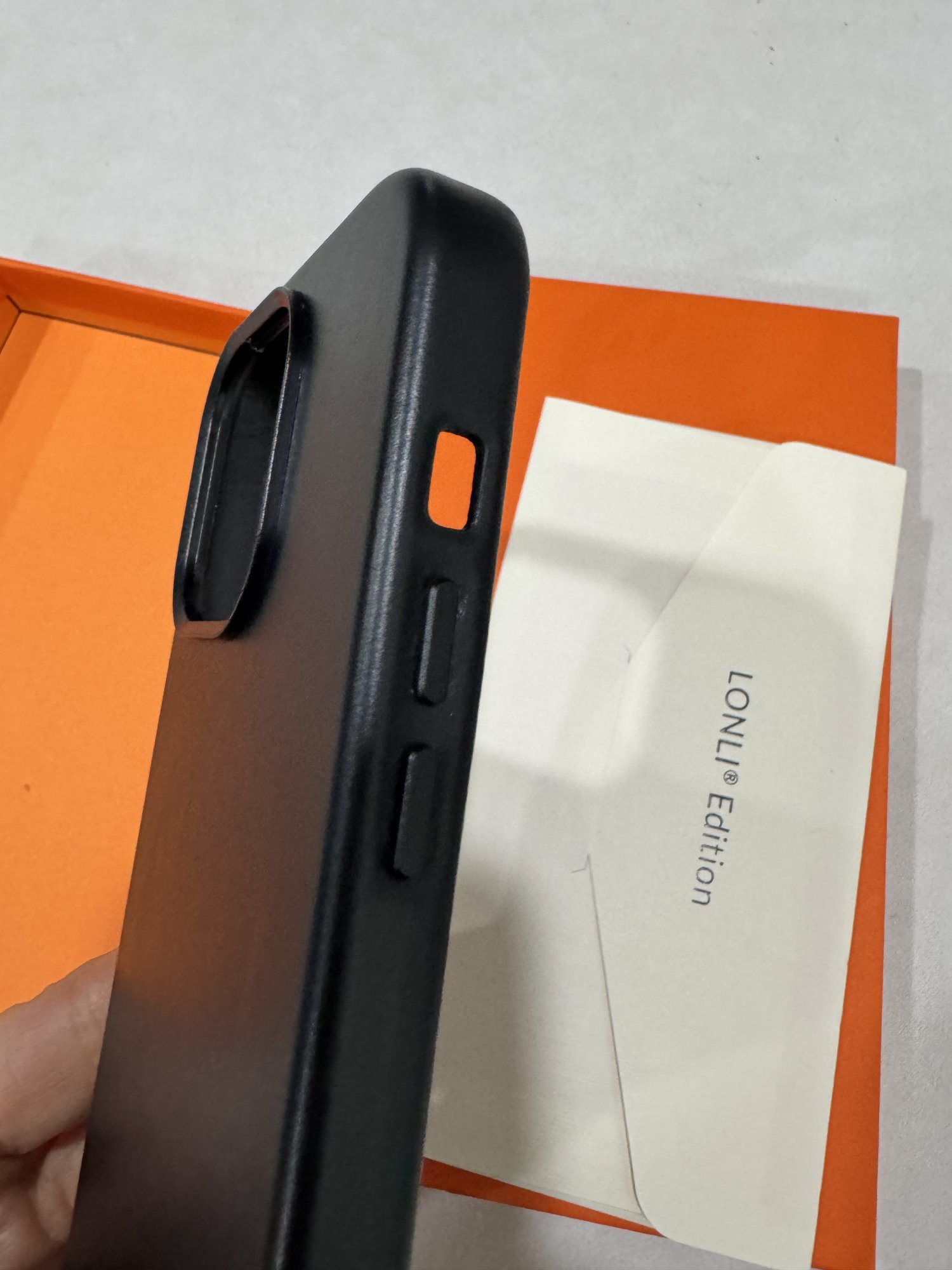 Weird mine doesn’t haves cut out. Ordered the same caseOrdered the Lonli Edition in black. I admit that the leather is a lot nicer than on the Classic. Smells like leather, even. But it has a cut-out instead of a button, so it's going back. Really disappointed.