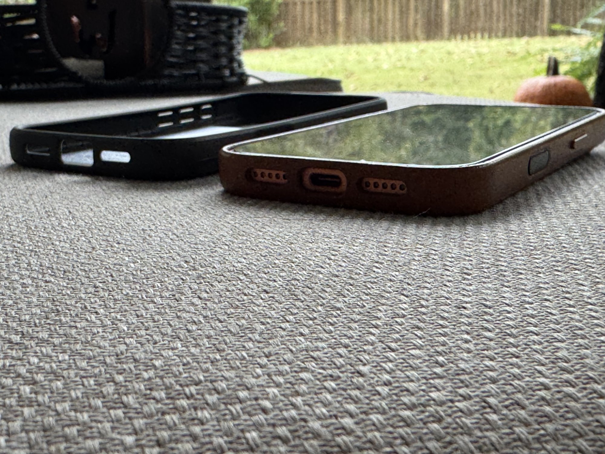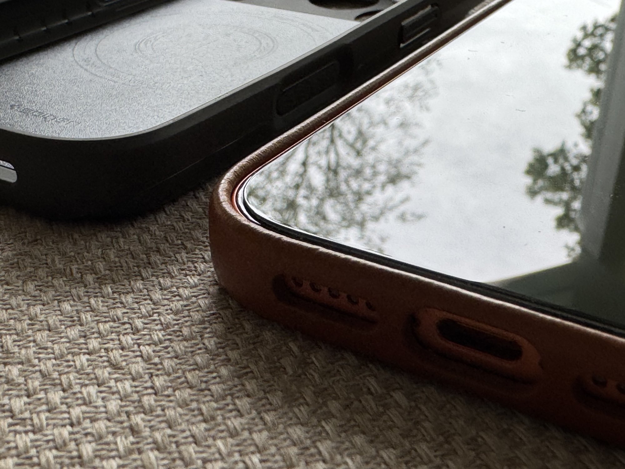 I didn't really use the case since I know I'll be returning it, but comparing it right now to my Belemay case, it is indeed a bit sharper/squared off whereas the Belemay is slightly beveled and flush feeling. Looking back at my pictures at full zoom, even the cutout is slightly jagged and sloppy on the nomad.Is the charging port cutout sharp and dig into your pinky? I had this case on the 15 Pro and it was one of the least uncomfortable closed-bottom cases I own.