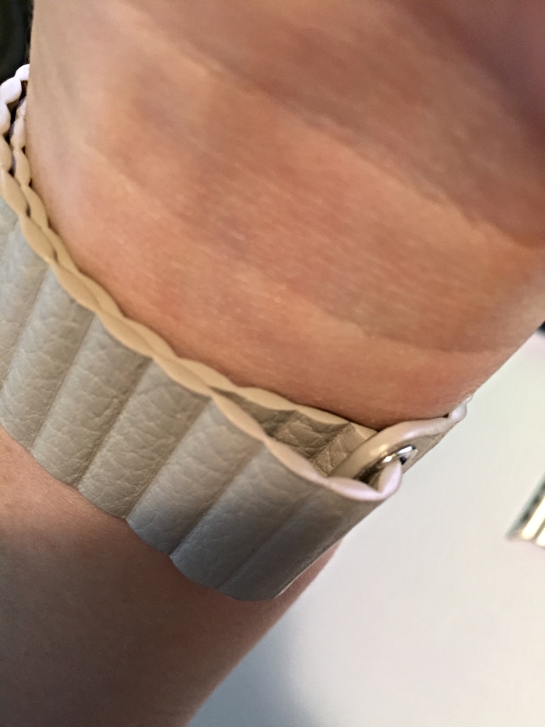 I received my 42mm beige(stone) leather loop from lnkoo888 and it has a few problem. Their was a chip in the leather by the adapter. It was on the side, so you could see it when the band was on the watch. Check photo below. Also, but more important, the locking mechanism on both the long and short part of the bands were unpredictable. It took multiple tries to get it to lock. Once it was locked, and seemed fine, but if I took the band off and put it in again it would go right through the mechanism. Finally after a few tries it would lock again. I have the OEM Medium Black Leather Loop and NON OEM Light Blue Leather Loop and have had no problems locking them in my watch. I sent lnkoo888 a note to see what he wants me to do. Worst case, I will have to return the band and buy elsewhere. I will upload pictures of the comparison I did on my 3 bands plus where the chip in the leather is. The color of the band was really nice though. I looks close to the oem version, but a little more beige looking, which is fine by me. You will see that the two NON OEM, the stone and light blue sizes are a little different. The long band is longer on the stone version, yet with the short band, the blue band is longer. Texture, feel and look are the same. The magnet is pretty strong. Hopefully, he will exchange for another one. The band does look nice.