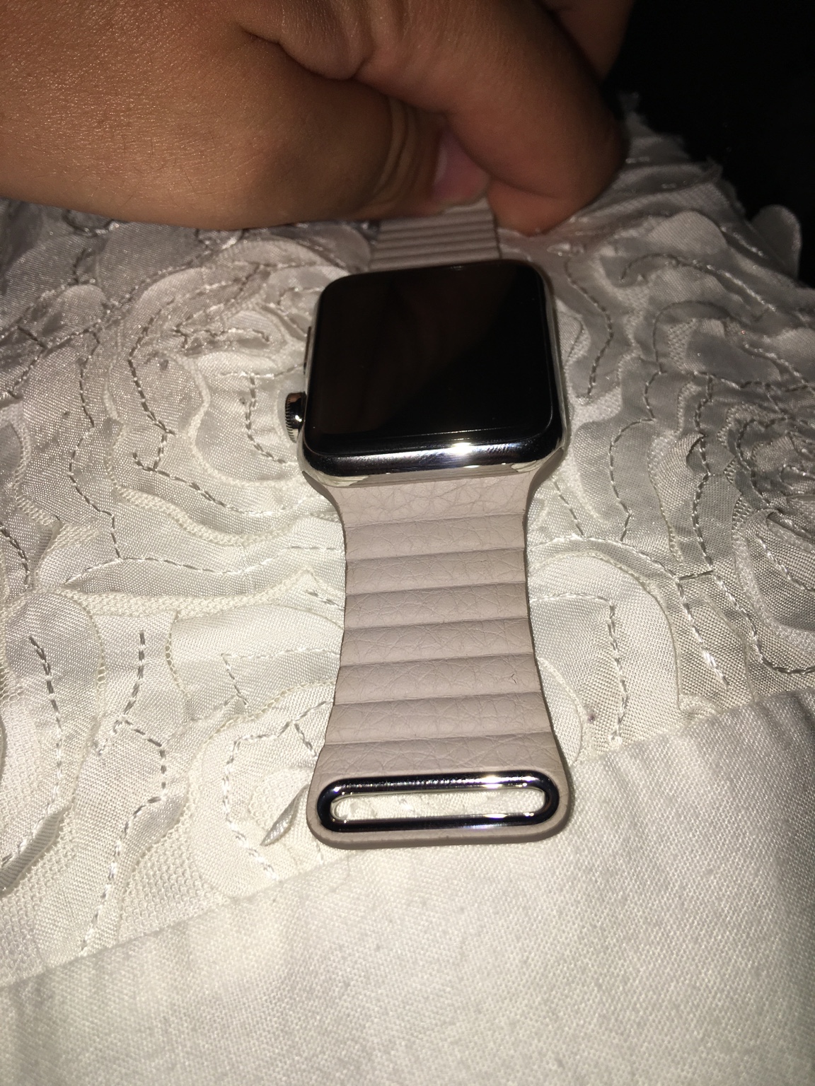 Unlike others it has size and I ordered the smaller size for the 38mm. It's smaller than the medium size of the 42mm Apple leather loop which the others I've seen are not. It feels OK, definitely less plastic like than one I ordered from Amazon (and returned). Too early to tell about durability but seems OK. The fit is good but not perfect, otherwise the quality seems good so far. Here are some pictures including how it looks on a 150mm wrist. The Apple leather loop on a 42mm and one I tried from Amazon on the 38mm would loop back and almost touch the watch.
