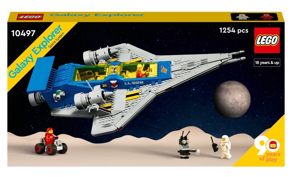 I still have all the Lego sets I got as a kid, which among other things includes the two blue-and-gray ships that are similar to this one, and a white one which has an aft-end cargo area. Not gonna lie... this kind of makes me wanna go get it and build some more legos. Sadly, I have nowhere really to keep them when they're built. But every once in a while I love to build them and also the three different lunar base stations (including the one with the tram in front of it)...I've not built this yet, so it's just a picture of the box, but when DPD delivered this on Thursday, it was like being transported back to Christmas Day in 1979 - I felt like a 7-year-old again!