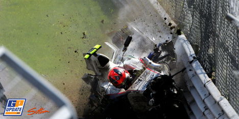 lewis wins his first gp, th 2007 canadian gp, though a incident packed race, he lead the race from start to stop!!!! only 12 cars finished the race in which robert kubica a bmw sauber driver broke his leg after this horrific crash