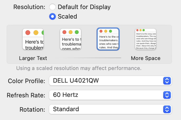 2021 MBP, System Information says (without SwitchResX, monitor set to DP 1.4)At which scaling? Or do you talk a out SwitchResX that works again?