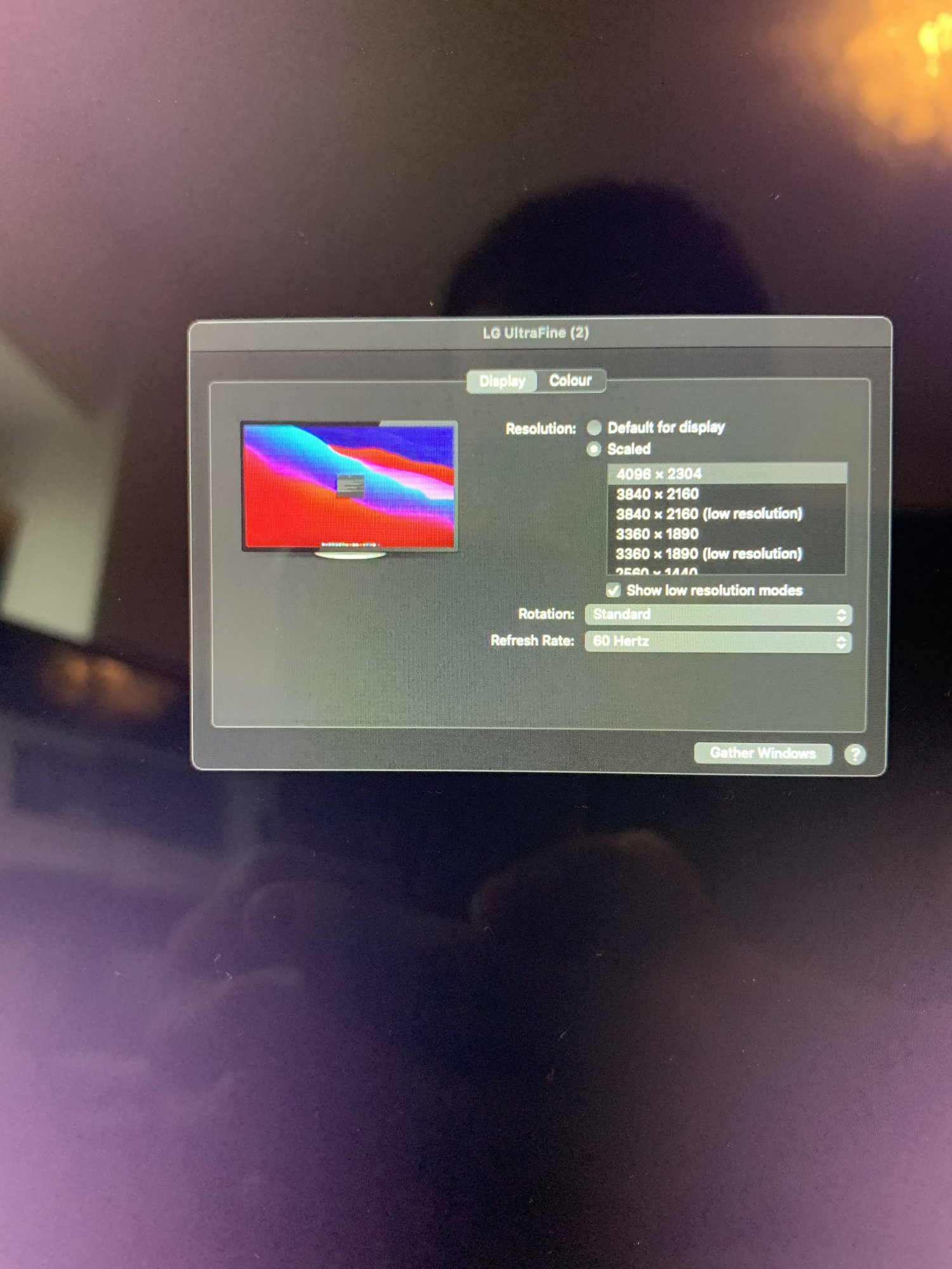 - the screen shows all the resolutions no problem, but there is no brightness slider whatsoever. I have tried plugging the monitor through the thunderbolt 3 port of the MBP, using TB3 cable, USB-C cable (Using the usb-c LG cable included in the 27 inch 5k LG ultrafine monitor which I also own), TB3 to DisplayPort cable (to a Targus DOCK570EUZ dock in f station), and also Without any other monitor plugged in and with the others, and I can get the full 4096x2304 @60Hz res on all the tests, however the brightness cannot be changed. The monitor is stuck tonmaximu. Brightness and it really is bright - sears my eyes after about one minute lol!