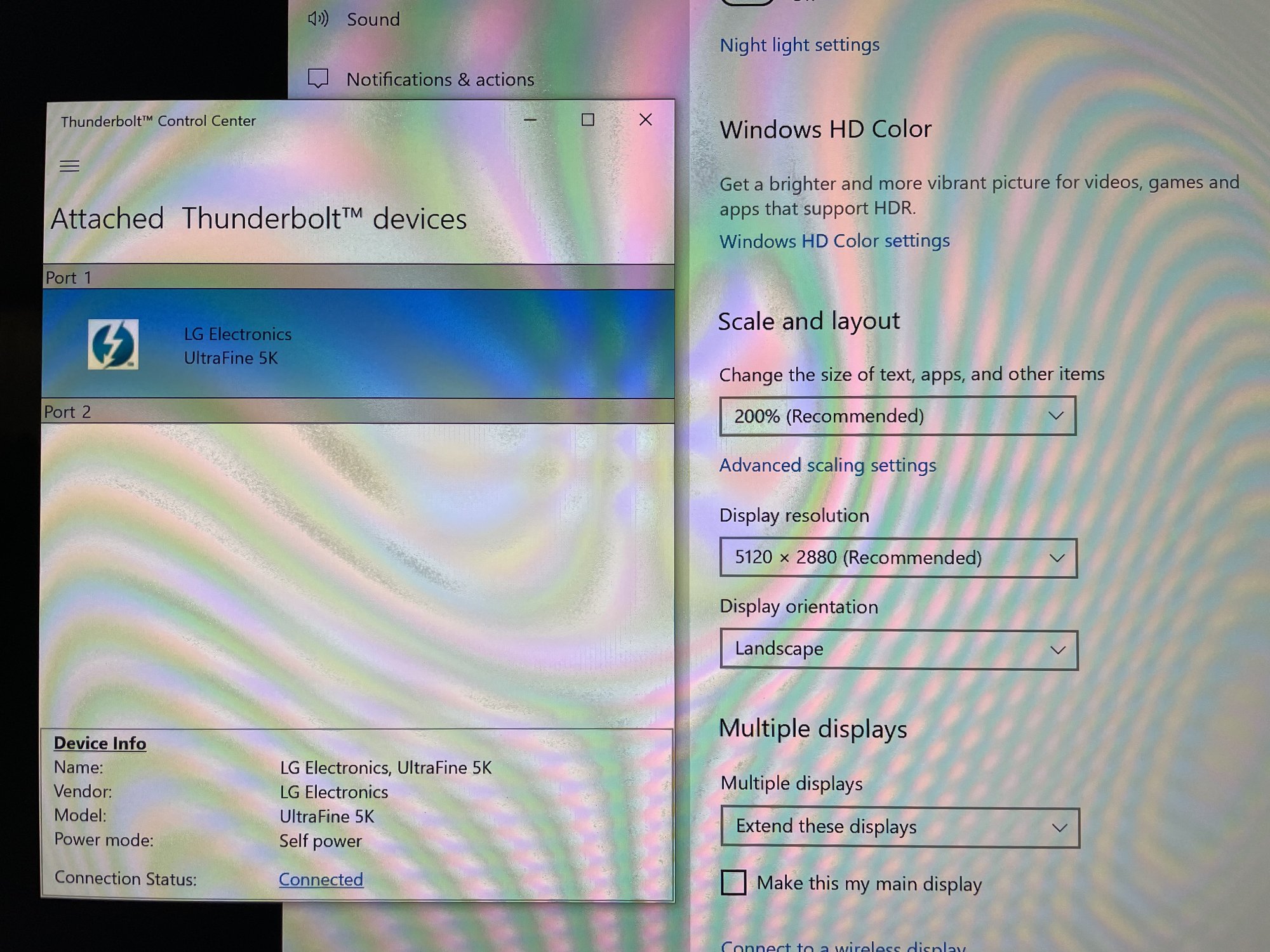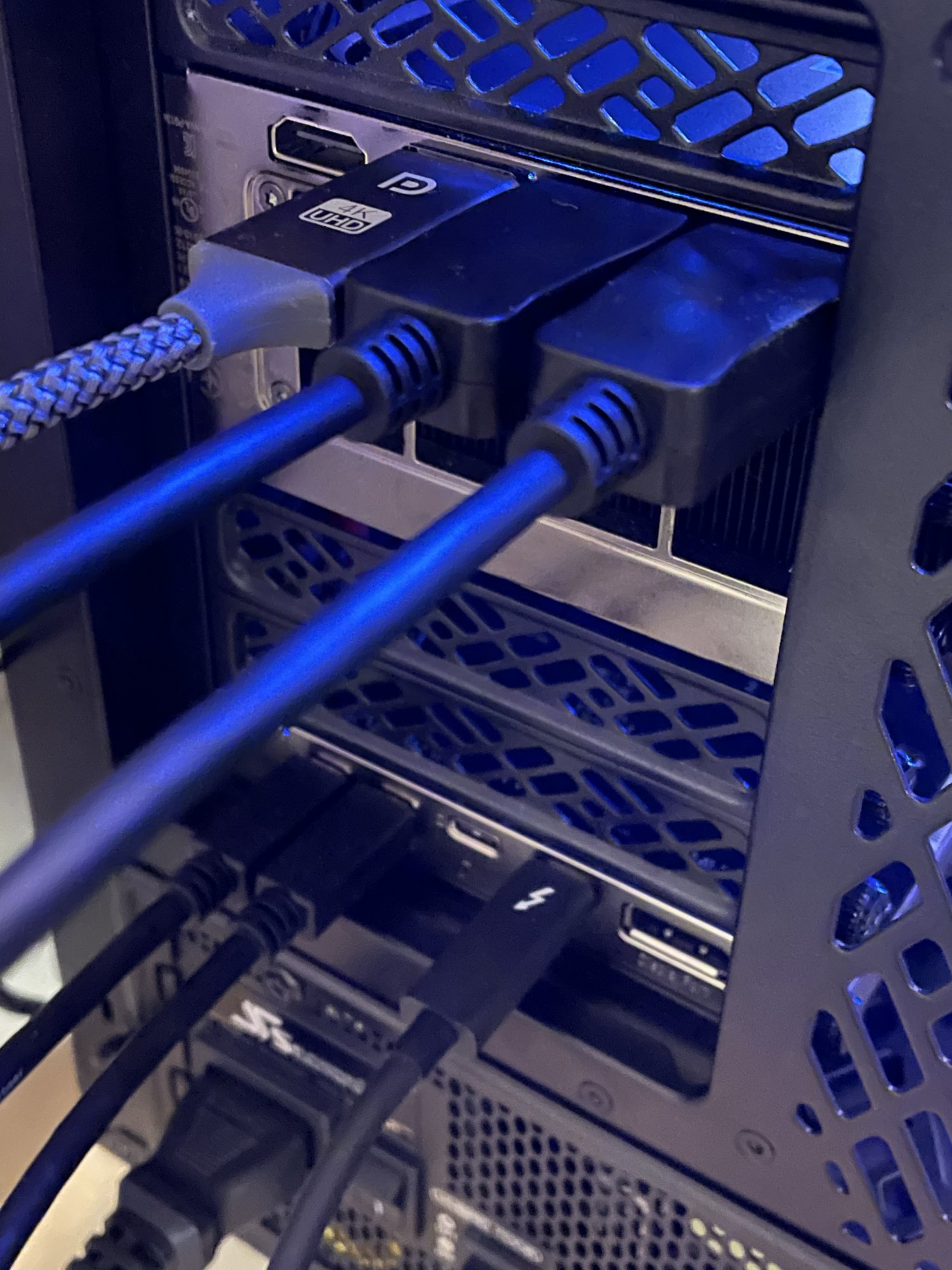 In the past few weeks of using my Thunderbolt PCIE card, NVIDIA RTX card, LG 5K 27-inch, and Dell 2K 27-inch dual monitors setup, I've encountered a problem. It seems that either the Thunderbolt PCIE card or the NVIDIA RTX card may be initialized after the Windows 10 system. As a result, the display configuration, such as the relative positions of the dual monitors and the resolution of the 5K monitor, is lost after rebooting. I have to manually adjust them in the Windows display settings. I'm not certain if this issue is related to the order of the three display port cables, one for Dell 2K and two for the Thunderbolt PCIE card, as shown in the image in the previous post. Does anyone have any other ideas or solutions to this problem?