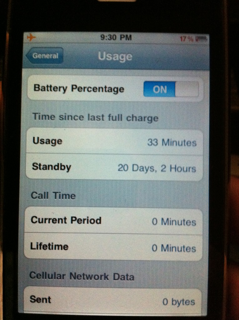 Not using my 3GS...so I loaded 4.1 on it, fully charged it, adjusted the icons and stuff, turned off everything, turned airplane mode on, and let it sit to see how long the battery would last.