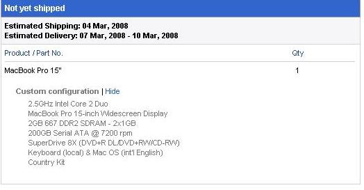 Hey guys, looks like my MBP shipped from China this morning. It will be delivered tomorrow! Can't wait...
