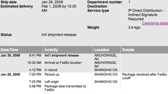 It's in transit from Shanghai to Anchorage right now - it'll get there Thursday at 1pm. You didn't go out with the first shipment the day before, like mine did. Mine arrived in Anchorage a few hours ago.