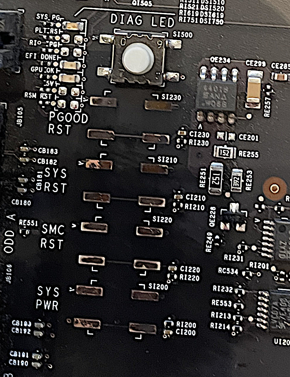 Also check the chips inside the „landing zone“ on top of the PCIe GPU power sockets. One can scratch them off or damage them if taking no care when pulling the 6 pin GPU power cables.