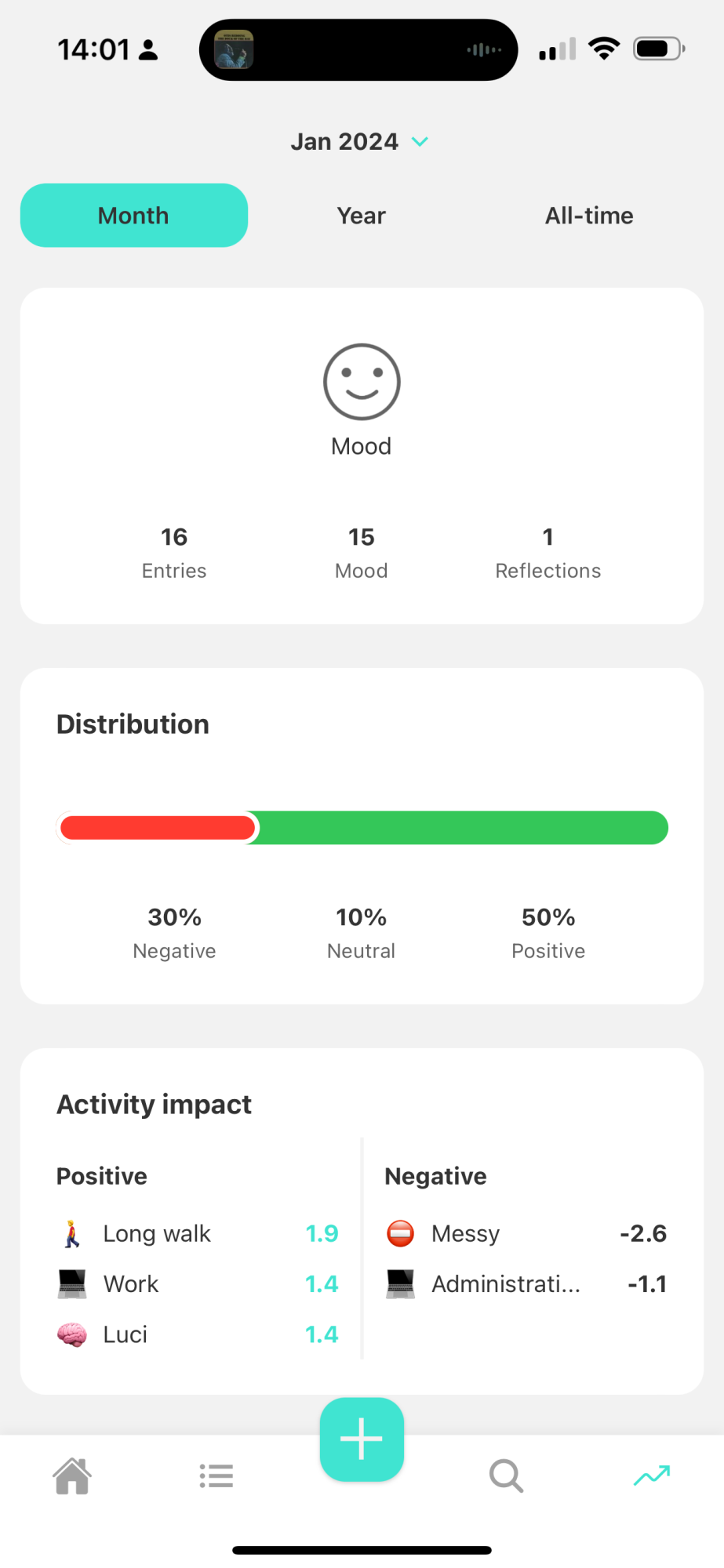 By going this detailed on Mood Tracking I hope detailed trends can be discovered such as a connection between activity + mood or perhaps being able to spot depression sooner.