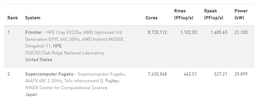I remember reading an Ars article that stated Frontier uses room temperature liquid cooling, which reduces a lot of the energy required to cool the entire setup. Not sure what the Fugaku setup uses to cool itself, but likely it is the traditional cold room setup, which uses a lot of energy.