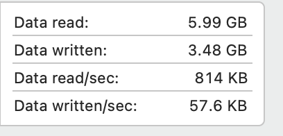My M1 macbook pro activity shows that I have written 42gb to my disk since last reboot but when i use "iostat -Id disk0" code in terminal it shows 130gb written this means two things:-