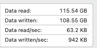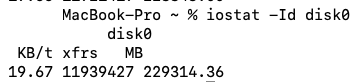 Or your iostat command is showing both reads and writes? Which is very similar to 84.77+42.40=127 GB.My M1 macbook pro activity shows that I have written 42gb to my disk since last reboot but when i use "iostat -Id disk0" code in terminal it shows 130gb written this means two things:-