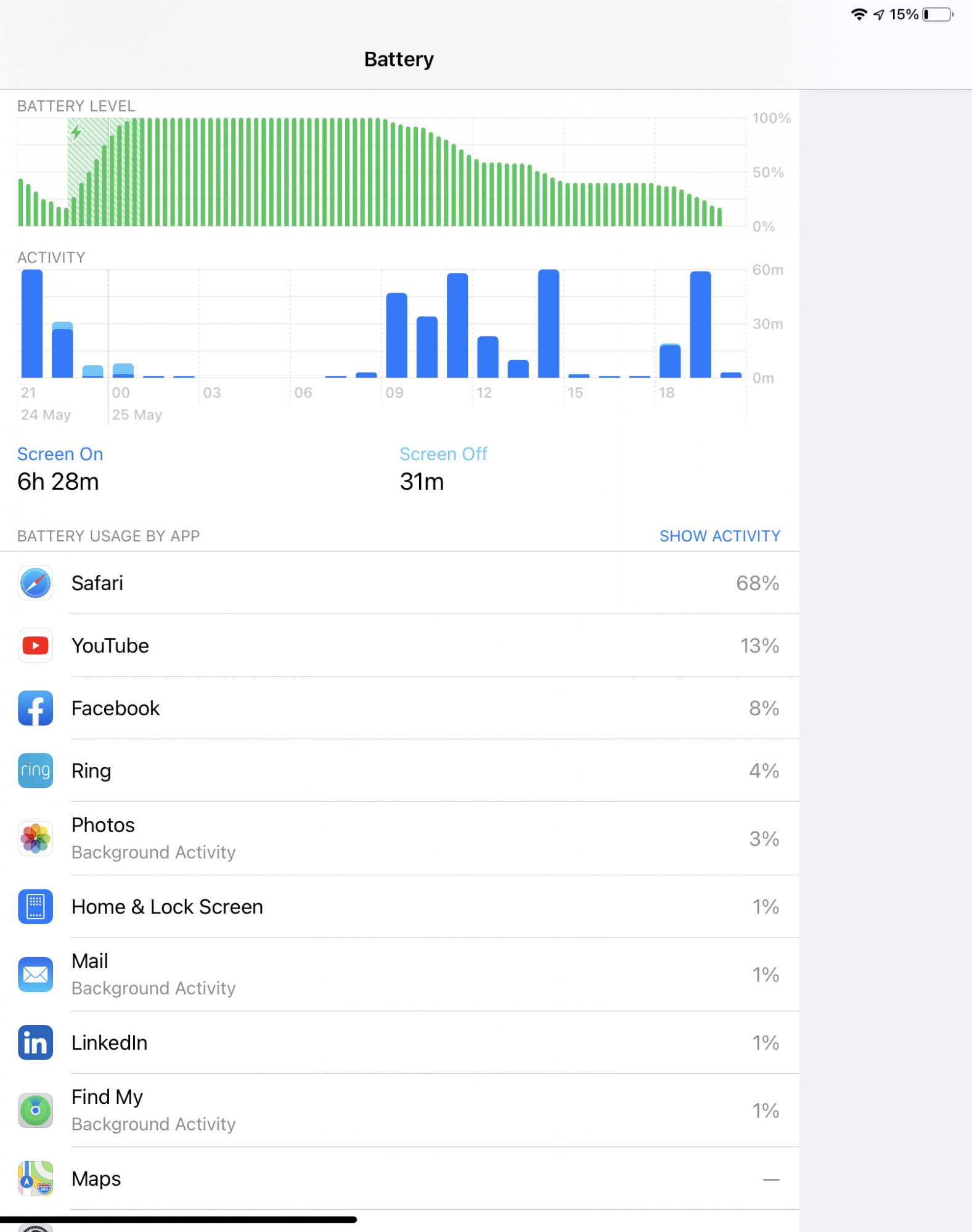The battery life on my 12.9” has not been good. I’ve had the device since May 21. I had hoped that it would have settled down by now. I will return the device if this continues for the full 2 week return period. I hope that iPadOS 14.6 fixes it.