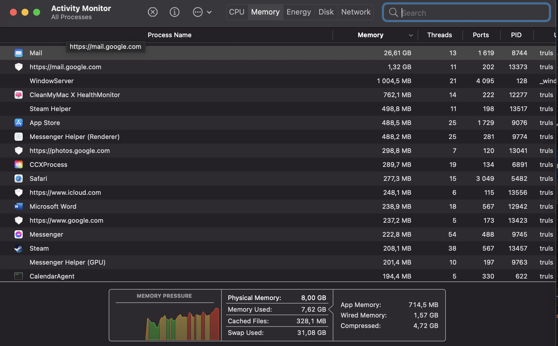 I doubt Mail is using 31GB swap.View attachment 1690078Soooo, I guess 8gb wasn't enough after all... Mail is destroying my MBA.
