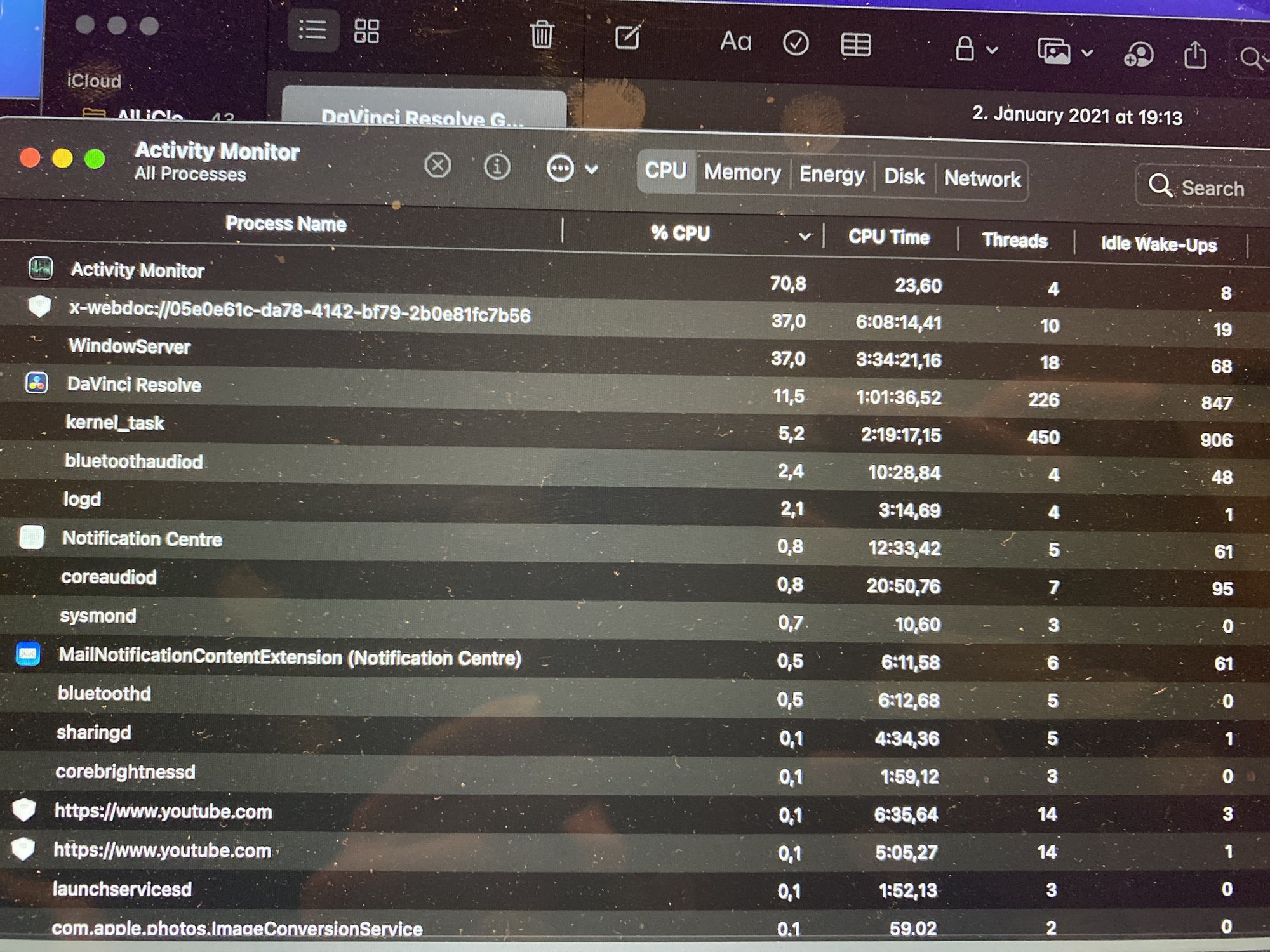 My MBA is behaving today in a very odd way. As mentioned before I have sound issues. Whenever I switch from YT to a different Window, YT is not playing anymore sound, but this happens also in other Apps like DaVinci Resolve.