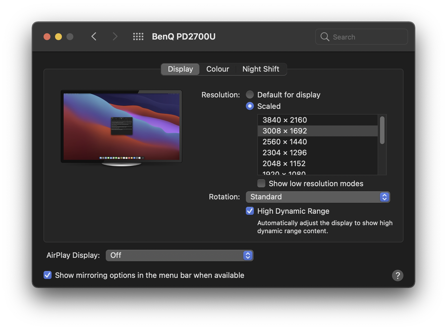 Do fonts look with 3008x1692 scaling as good as lower scaling like 2560x1440 or 1920x1080?About time Apple! 11.4 finally fixed the issue with HDR mode when I connect my Mac Mini M1 and BenQ PD2700U with USB-C to DisplayPort cable.