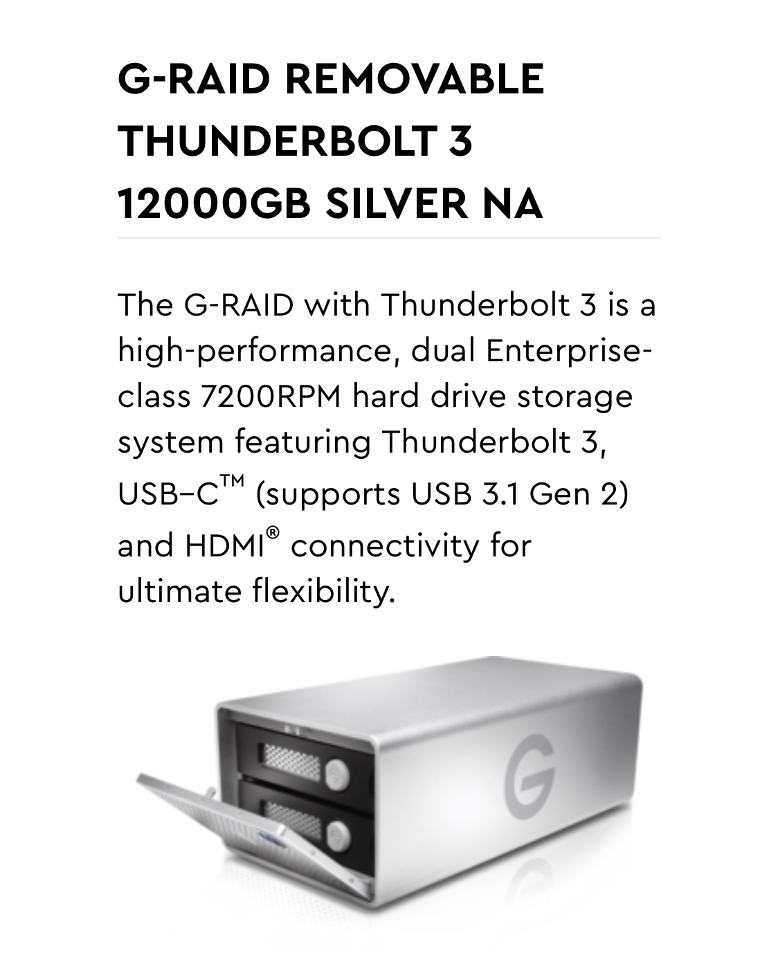 Here is a pic and specs of what I got. Unfortunately it’s for a film so I need the the entire 12tb active. I would be alright if I could at least get 400mbs. Was hoping Mac mini could do it. R3d footage is big. Thanks the suggestions! Really appreciate it."Hooked up 12tb graid thunderbolt 3 drive to owc thunderbolt 4 hub to the Mac Mini M1 8gb memory. My read and write are 200–240. Is this the fastest speeds I’m going get? If so what external would work better for that much footage. Editing a film and working with lots of footage."
