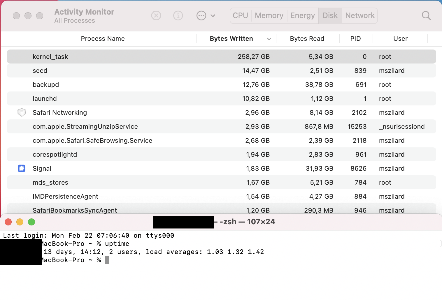 this is after 13 days uptime, almost 260 GB data written