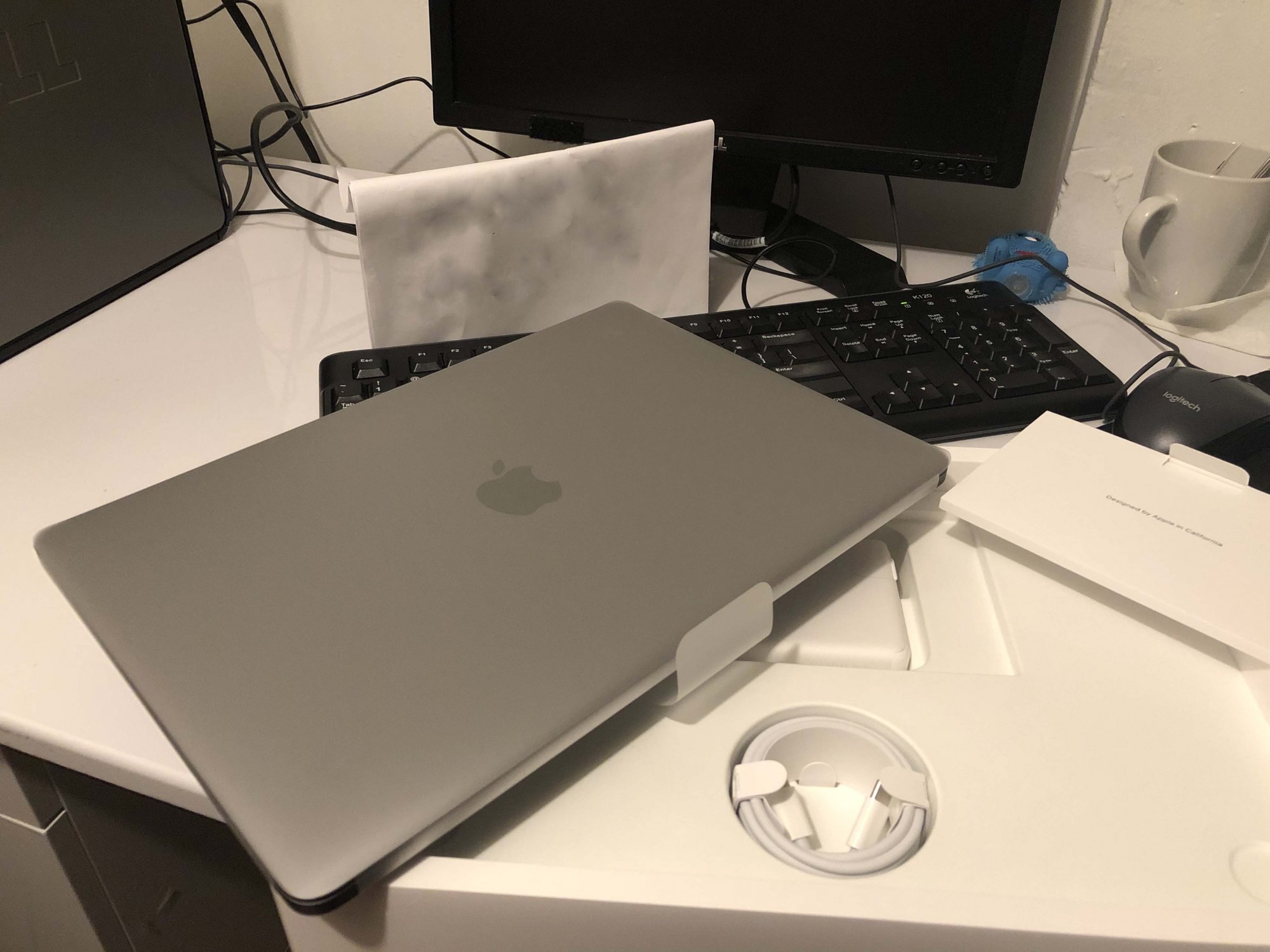 It’s always fun unboxing a new Apple product, but not much has changed since 2015. In fact, you are getting less in the box these days. I distinctly remember getting a lint free cloth with my previous Mac, but when you are a trillion-dollar company, it's too expensive to include things like that these days. Upon opening you are greeted by the MacBook itself, charging brick, which is now USB C, literature and space gray stickers.