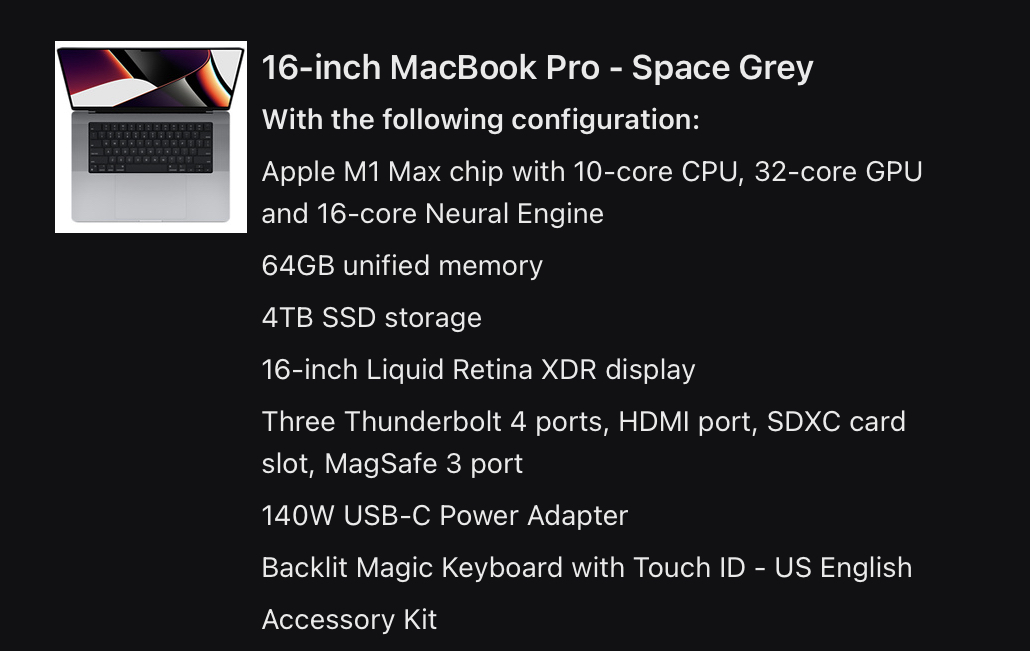 Before this I had purchased an M1 Mini, M1 Air and M1 Macbook 13". My Geekbench profile is here with speeds if curious.. going back 12 years through several Macs. 👍 The M1 is fast (mini/air/mbp 13) but my main daily driver, my 2019 Mac Pro 16 core, Vega II Duo, Afterburner, 382gb ram etc was still faster for me in multicore video editing etc.