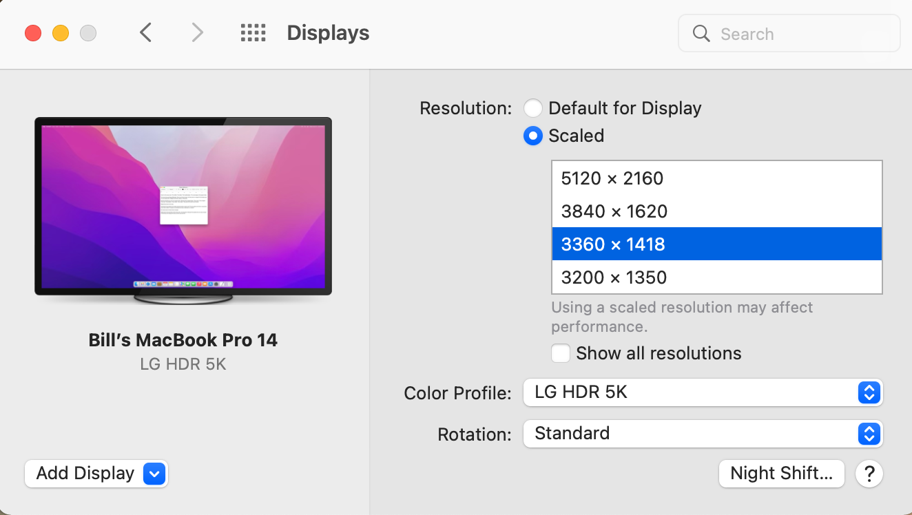 Below 3200 x 1350 is 3008 x 1269. I still can't get 5K + HDR to work at the same time, but this is already better than most other high res monitors.