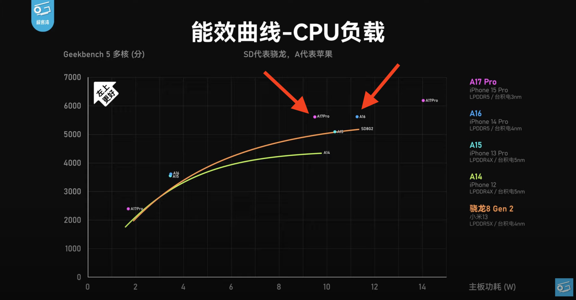 Isn't that to say the A17 Pro can match the maximum performance of the A16 Bionic at a significantly reduced power draw?