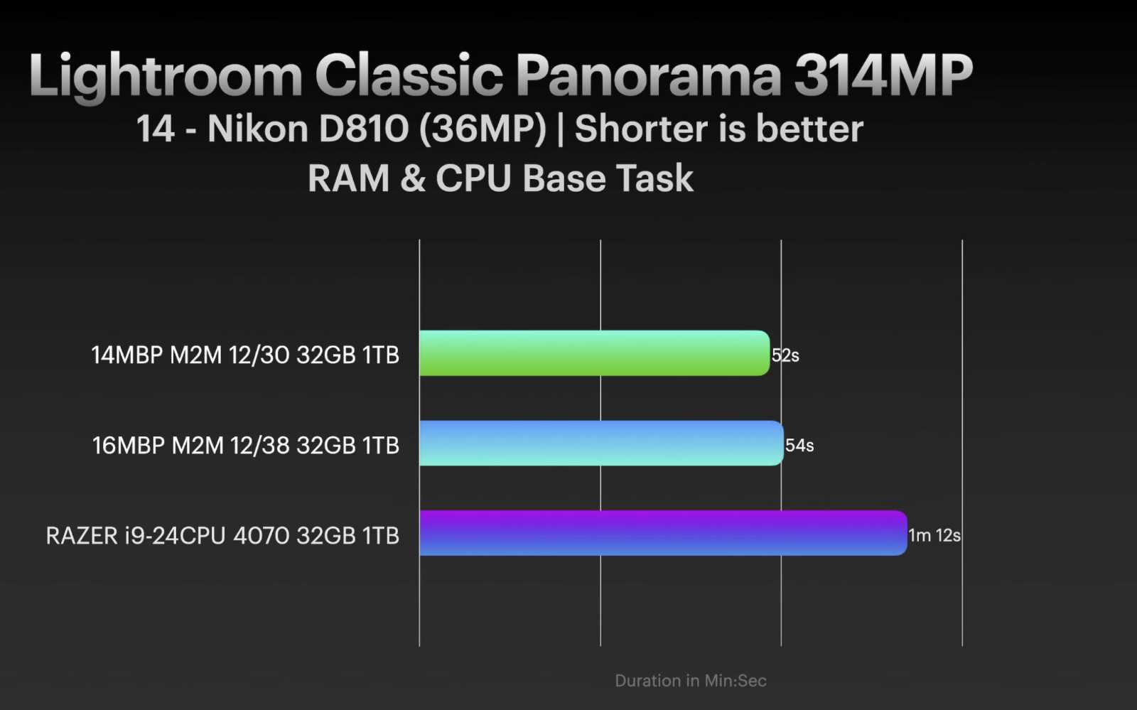 Here is an example comparing the MacBook Pro M2 Max vs RAZER Blade 18 (Intel Core i9-13950HX and NVIDIA Geforce RTX 4070) in photography and video tasks.