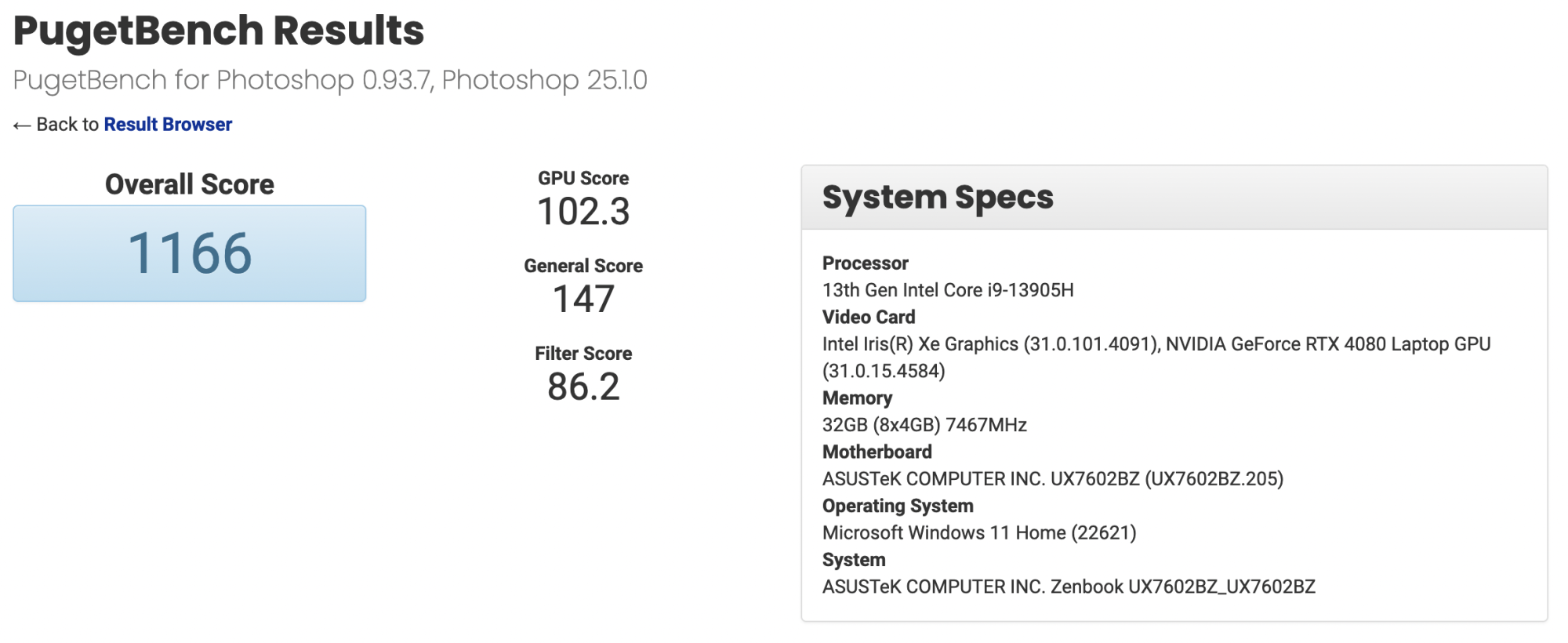 PugetBench Individual Results