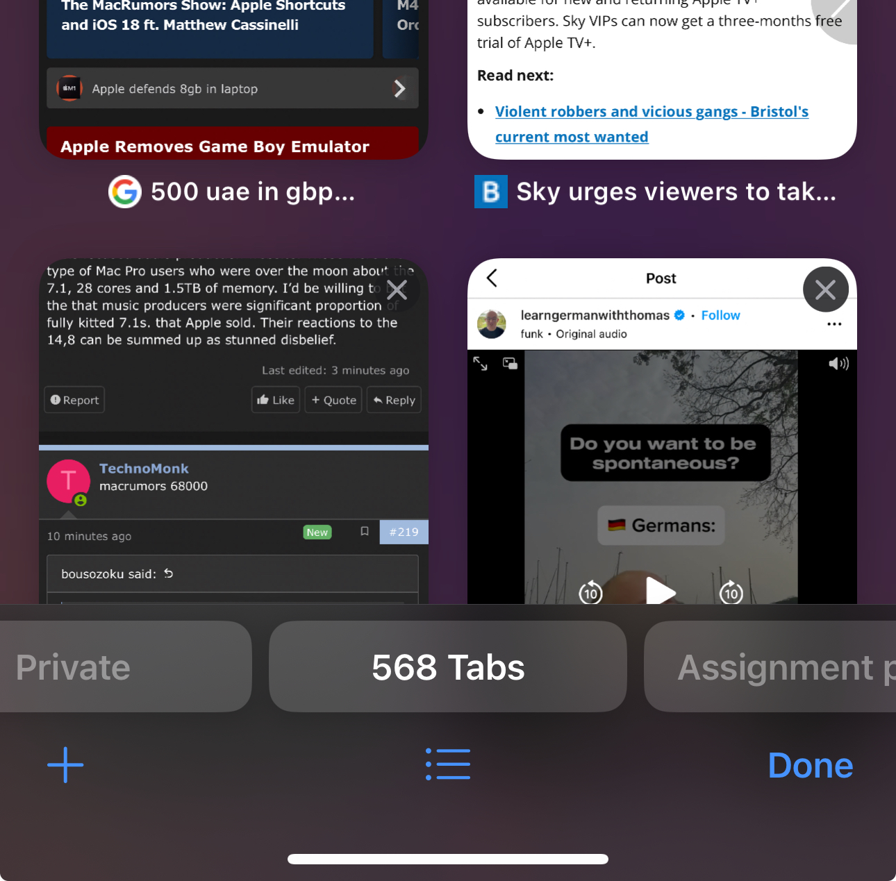 Just noticed my iPad safari has 108 tabs open. Mac can’t even support 100 tabs. lol.Someone will complain that it isn't enough for the 100+ browser tabs.
