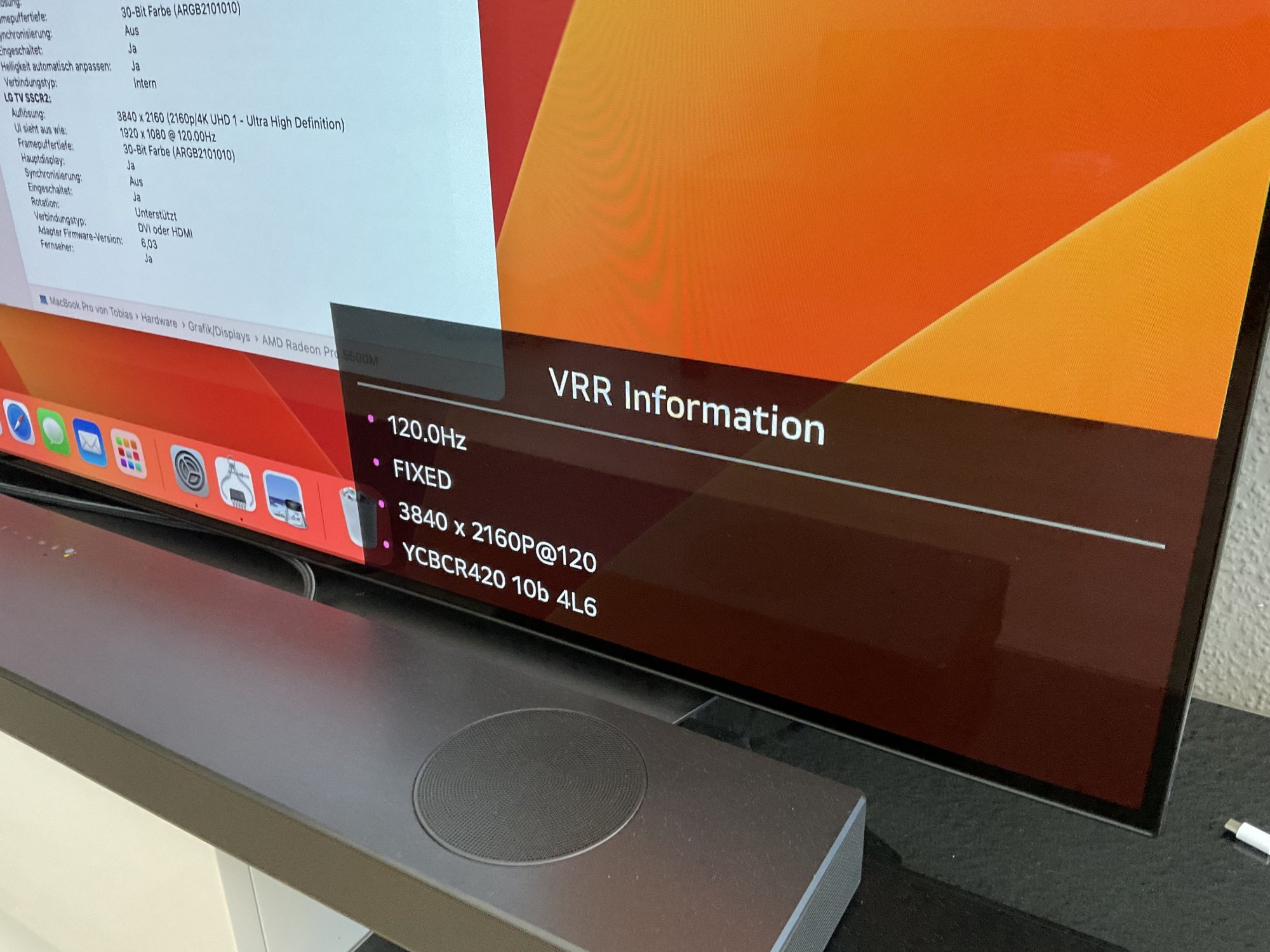 Yes, of course. I attached screenshots of Systemsettings & Systemprofiler for the CableMatters (120Hz Limit) & the Apple 2119 Adapter (60Hz Limit). Also the VRR menu on the LG CX with the CableMatters adapter. You can see that it uses HDMI 2.1 FRL signaling (4L6 with 4 lanes) instead of the 2.0 and earlier TMDS signaling with 3 lanes. Unfortunately it’s a fixed framerate and not variable (VRR) and my CableMatters adapter outputs only stereo and not 8 channels or more.wow~ amazing!