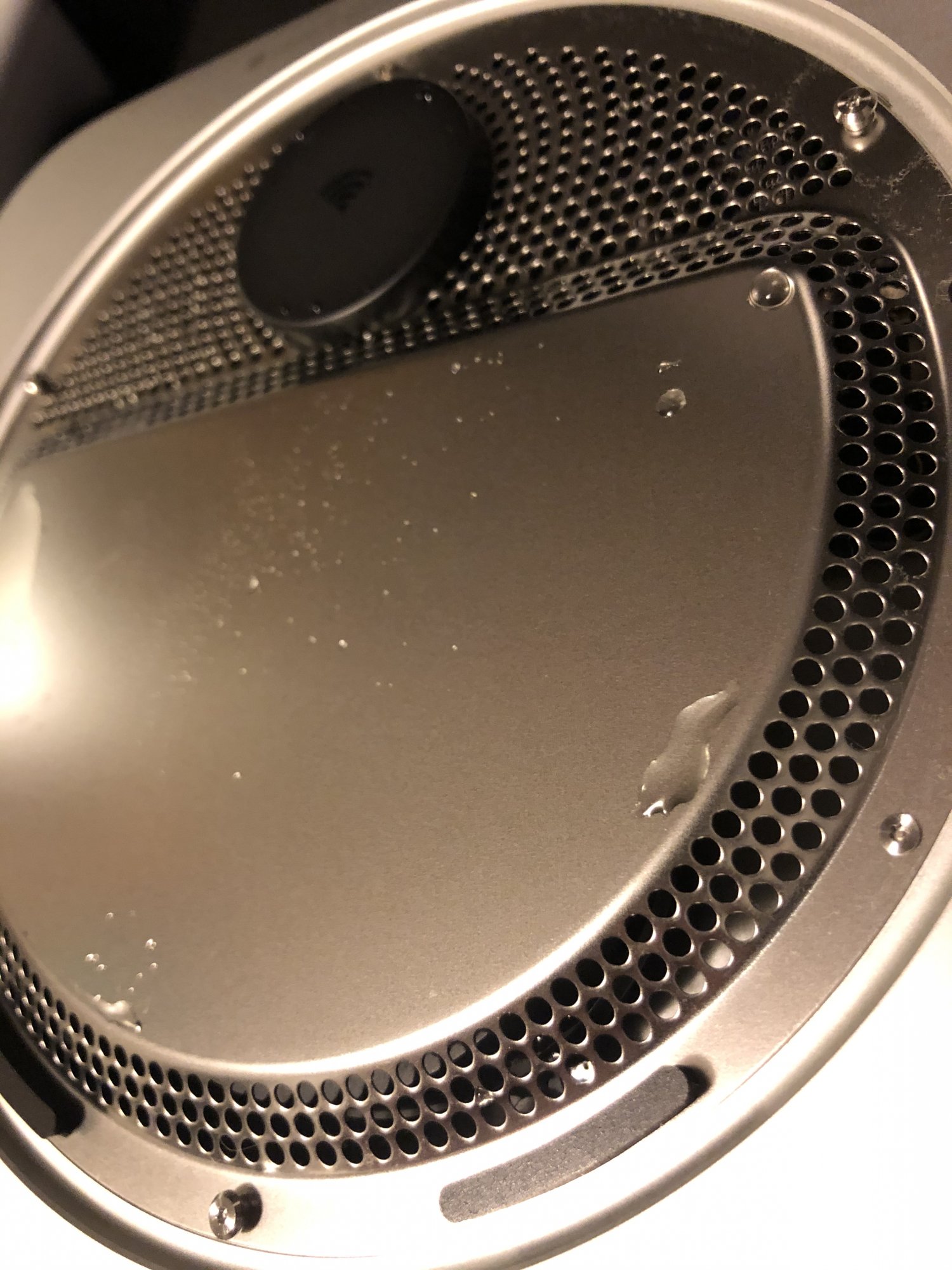 i noticed the back was subtly wet. The black part where all the ports are. I went to wipe it, and more liquid appeared. Whenever I rub it with my fingers more and more appears. I removed the black plastic from the bottom and there’s evidence of some form of liquid inside. It has NEVER been spilt on, so save me that. No drink has ever been near this thing. What is going on??????