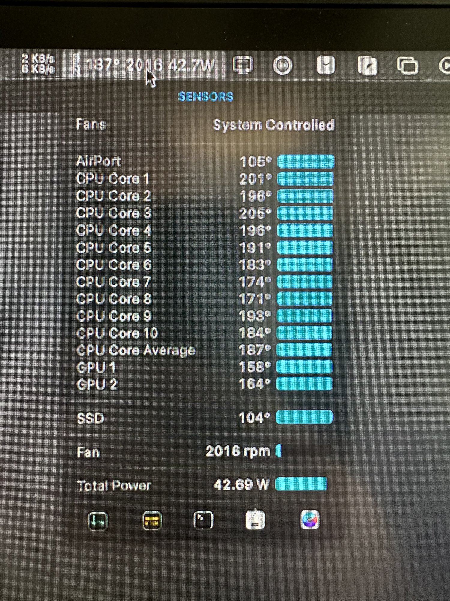 Don't worry. https://bjango.com/help/istatmenus6/knownissues/ unless your temps are in celsius. 205 F = 96.1 C with is a normal temperature after 4 minutes running cinebench. I've temperatures as high as 225 F in my MacBook Air M1running cinebenchView attachment 2181840I’m sure this has been asked a ton but I haven’t found anything that has such high temps?