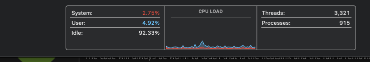 I have a new Mac mini M4, Set up last week, I am running MacOs 26 public beta, I have noticed it running hot, see pick. it up am running one monitor and my space is air conditioned and at 70 degrees, the unit is installed vertically in a Minisopuru vertical dock. I run iStatistica Pro and have been monitoring the temps, among others and noticed it staying around 160F which I do not consider hot, today I had cores running 195f which to me is hot, yesterday I installed a fan with my set up to assist in ventilating het from my set up and when I checked to well below is screenshot of both sensors temp and CPU load at same time. I am new to Apple silicon but definitely not new to Apple, still run the MacBook Pro I bought new in 2020 and it never reaches these temperatur