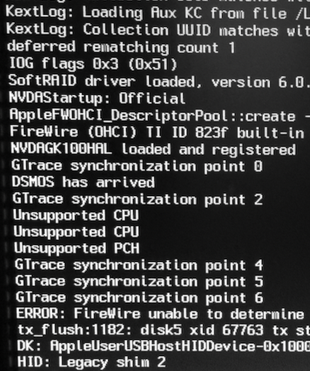 boot-args can contain anything (or nothing) at all - you could set boot-args="MeinHundHatKeineNase=WieGeriechtEr?Schrecklich!" and there would be no error (although the kernel might quietly groan). The kernel (and kexts) simply scan the boot-args for whatever they're interested in at the time, and ignore everything else."cpu=1" or "numcpus=1", MacOS will happily ignore that and never let you know. (The exception to this is if you type a genuine boot-arg but give it an invalid value, the kernel/kext may issue a complaint about the value, then most likely ignore it.)* 1024), 'm' or 'M' (meaning * 1024 * 1024), or 'g' or 'G' (meaning * 1024 * 1024 * 1024)."amfi_get_out_of_my_way=1" is identical to "amfi_get_out_of_my_way=0x00001", "amfi_get_out_of_my_way=0b1", etc. "debug=0x400" is identical to "debug=1k", although the hex version is clearer about which bits are being set (of course, binary is also good for that, if less compact - "debug=0b10000000000" is also identical). "zsize=12582912" is identical to "zsize=12M".nbuf=17 means "17", while nbuf=017 means "15". That means you don't want to use any leading zeros on decimal values.)"16k" is identical to "0x10k" is identical to "0b10000K". (Just in case you're feeling the urge to confuse yourself later.)boot-args="debug=0x100 -no_compat_check debug=0", MacOS would effectively only see "-no_compat_check debug=0". If there are duplicates, the last (right-most) one "wins."boot-args="-no_compat_check=999", the "=999" just gets ignored (all boolean flags are assigned the value 1 if they're present). Arguments that don't begin with '-' are considered variables, and are expected to be immediately followed by '=' and a value; however, if there is no "=value", they are assigned a value of 1 (so, hypothetically, "amfi_get_out_of_my_way=1" should be identical to just "amfi_get_out_of_my_way" (I haven't actually tested that, but the kernel source suggests it should be so)).I decided to test cpus=1, and found something interesting. While booting 11.3.1 would freeze at random places before, setting cpus=1 freezes at exactly the same place, every time - 10x reboots. I don't think I've ever seen it freeze at !BSD, but it's 100% repeatable with cpus=1.The boot-arg "cpus=N" sets the number of logical processors, so "cpus=1" means "use only one logical processor." If you're on a dual-CPU system with 12 total cores and hyperthreading, making a total of 24 logical processors, "cpus=" can range from 1 to 24. In that case, "cpus=1" uses only one core, without hyperthreading.