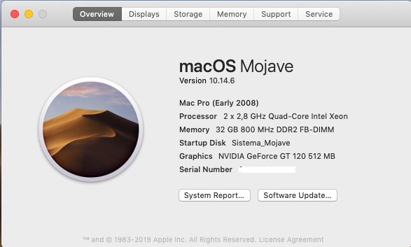 Hi,HI all, I've just found this thread and would appreciate any available help; I have a 3.1 [2x2.8GHz Xeon, 32 GB RAM, with an Afox/NVidia GT740 4GB DDR3 GPU and also the original GT120/512MB] running High Sierra with dosdude's patch. I have installed Mojave, again through dosdude's patch, but can't get any video output from the GT740. The GT120 seems to work fine, giving me a boot screen and the machine loads the OS, but although system info reports the GT740 as "driver installed" it doesn't semm to connect to the displays. I've got two Dell monitors pluggged to the GT740 and a Samsung plugged to the GT120, and I think I've tried every possible combination between the various displays and connections [HDMI, DVI-D, VGA etc]. I've also tried to remove the original GT120 but to no avail. High Sierra runs fine, with both cards and the three monitors. Any suggestions? Thanks,