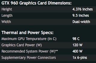 Gigabyte GeForce GTX 960 OC 4GB GDDR5 Dual Link DVI HDMI DisplayPort PCI-E Graphics Card (links through to exact model purchased and price paid).