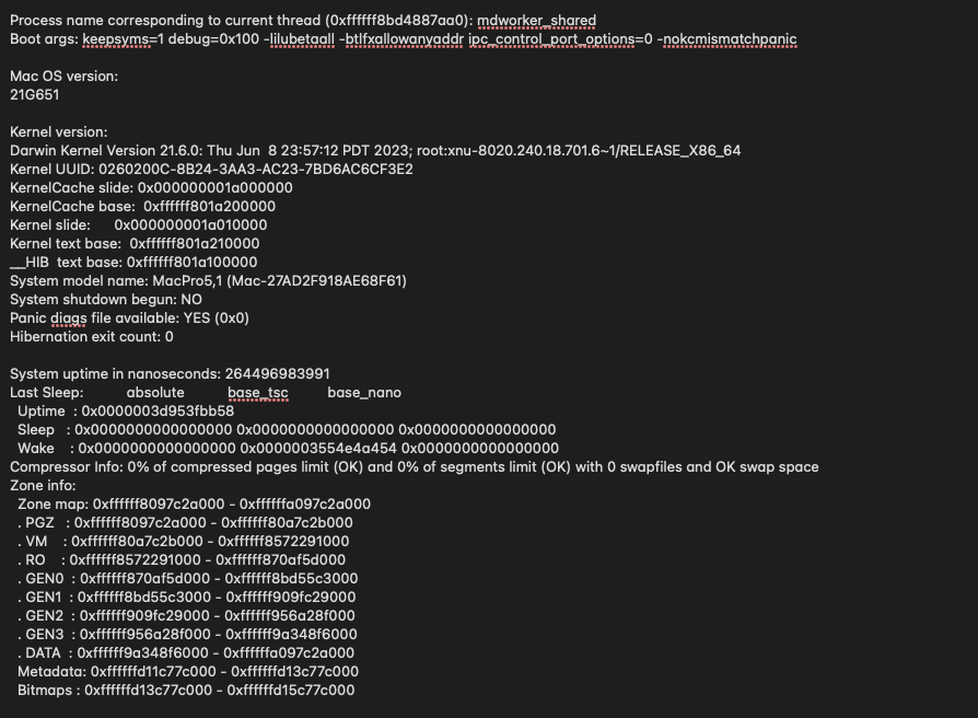 Darwin Kernel Version 21.6.0: Thu Jun 8 23:57:12 PDT 2023; root:xnu-8020.240.18.701.6~1/RELEASE_X86_64