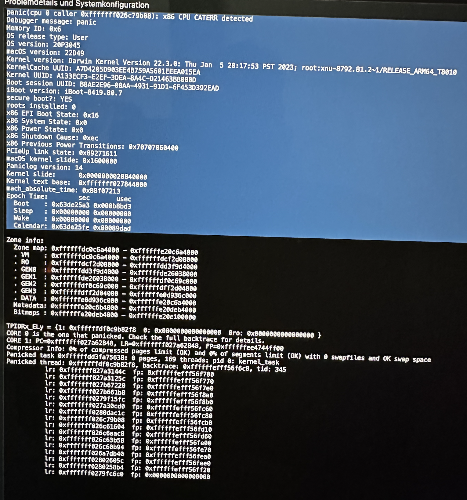 I have a MacPro 7.1 and got a CPU error report at the beginning ( that's how it started ). After that the Mac restarted every now and then. If I tested Cinebench or transferred a lot of data from a SSD via Thunderbolt it also froze or went off. At some point it didn't boot up to the operating system and I was able to wipe the hard drive using Disk Utility because I thought it might be something with some software. Unfortunately this was not the case. After hours of rebooting I managed to reboot the operating system again (also many times it went off again and again). After the operating system (Ventura) was back on it I thought OK maybe it was now and the error is gone. But he booted sometimes yes and sometimes no with error and always restarts. Then it started normally and I could move around in Ventura, but when I went to the screen saver settings it froze again or restarted. OK then I went to the Apple Store and was able to demonstrate the error and left the device there, unfortunately the warranty has expired and an Apple Care I have not continued. Apple thinks it would be probably 99% of the processor (and this is far from cheap at Apple). I do not know if anyone has ever had this kind of error and can perhaps give me some advice and whether it is also the CPU at all ? After I picked up the MAC, the hard drive has been completely erased by the Apple Store and unfortunately I can't reload it because it always restarts with the error message. For tips and assessments I would be very grateful.