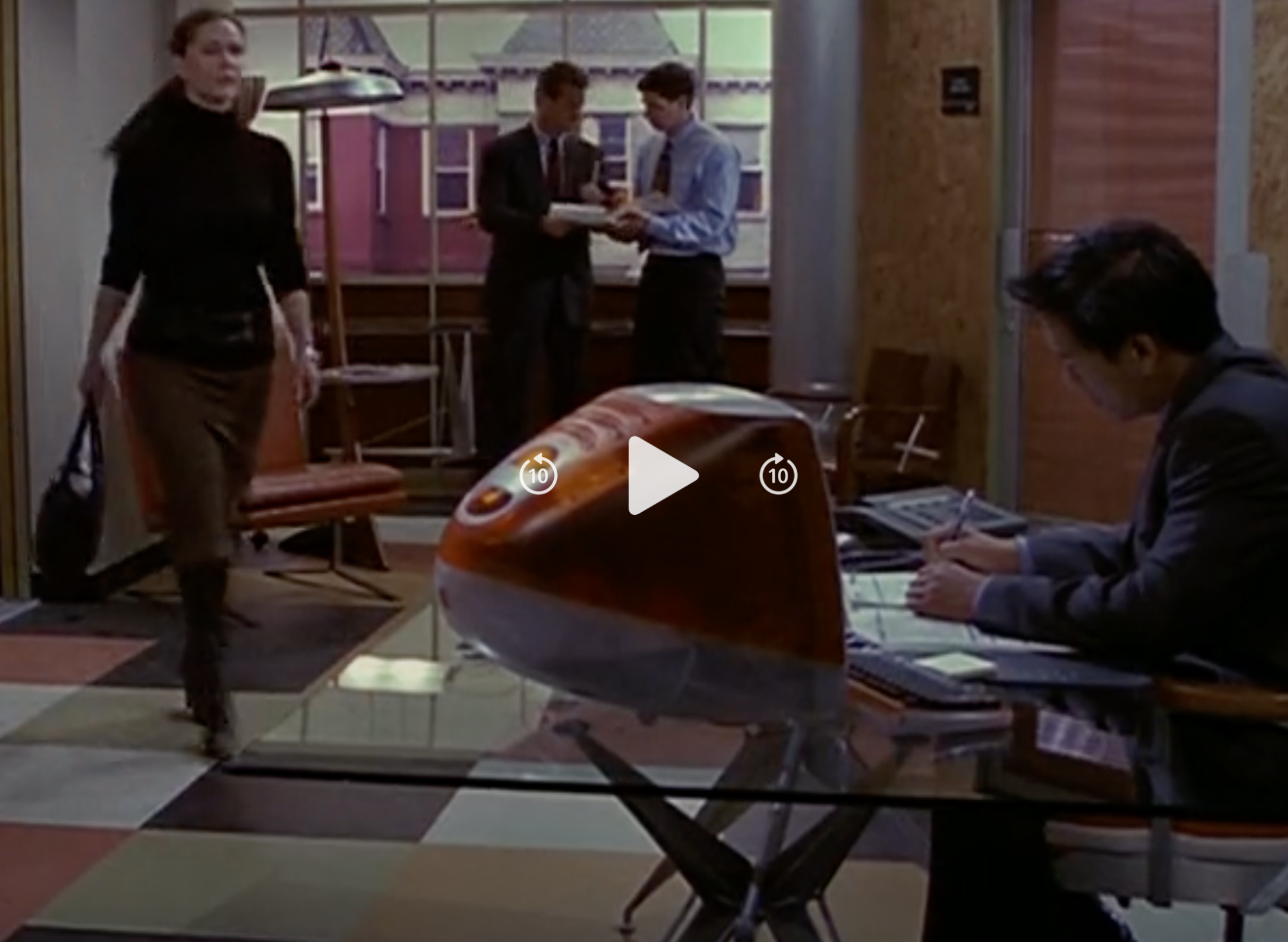 A Mac Cube can be seen on the far left in the graphic design headquarters of a lead character. Anyone recognise the monitor?