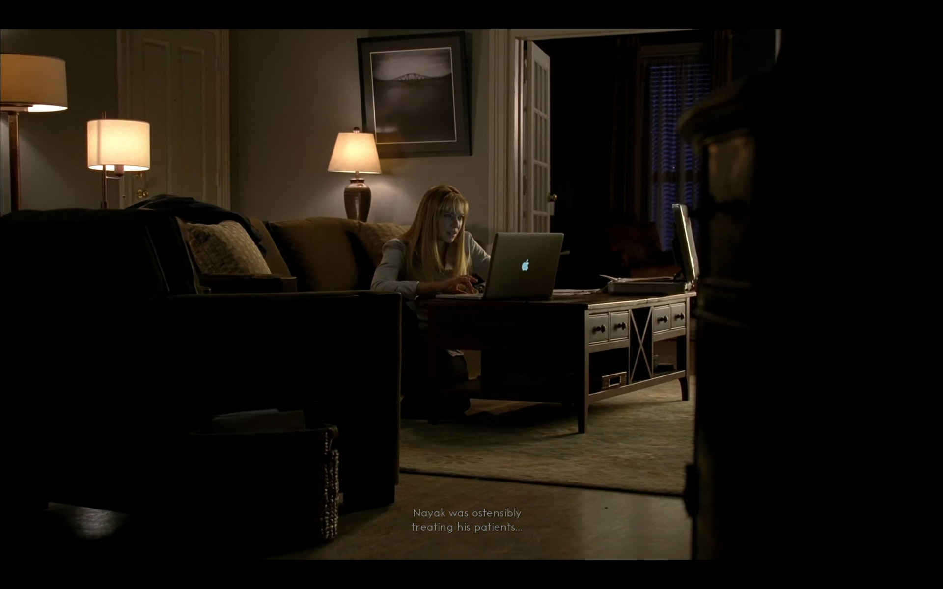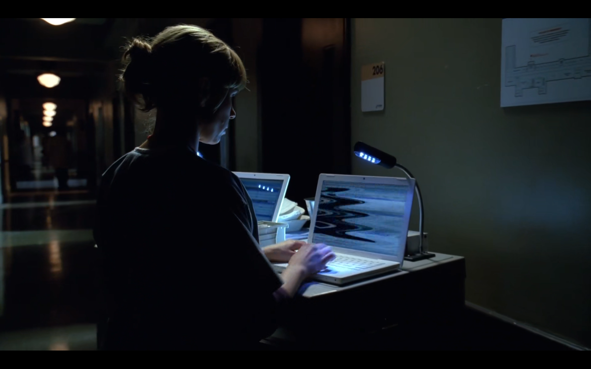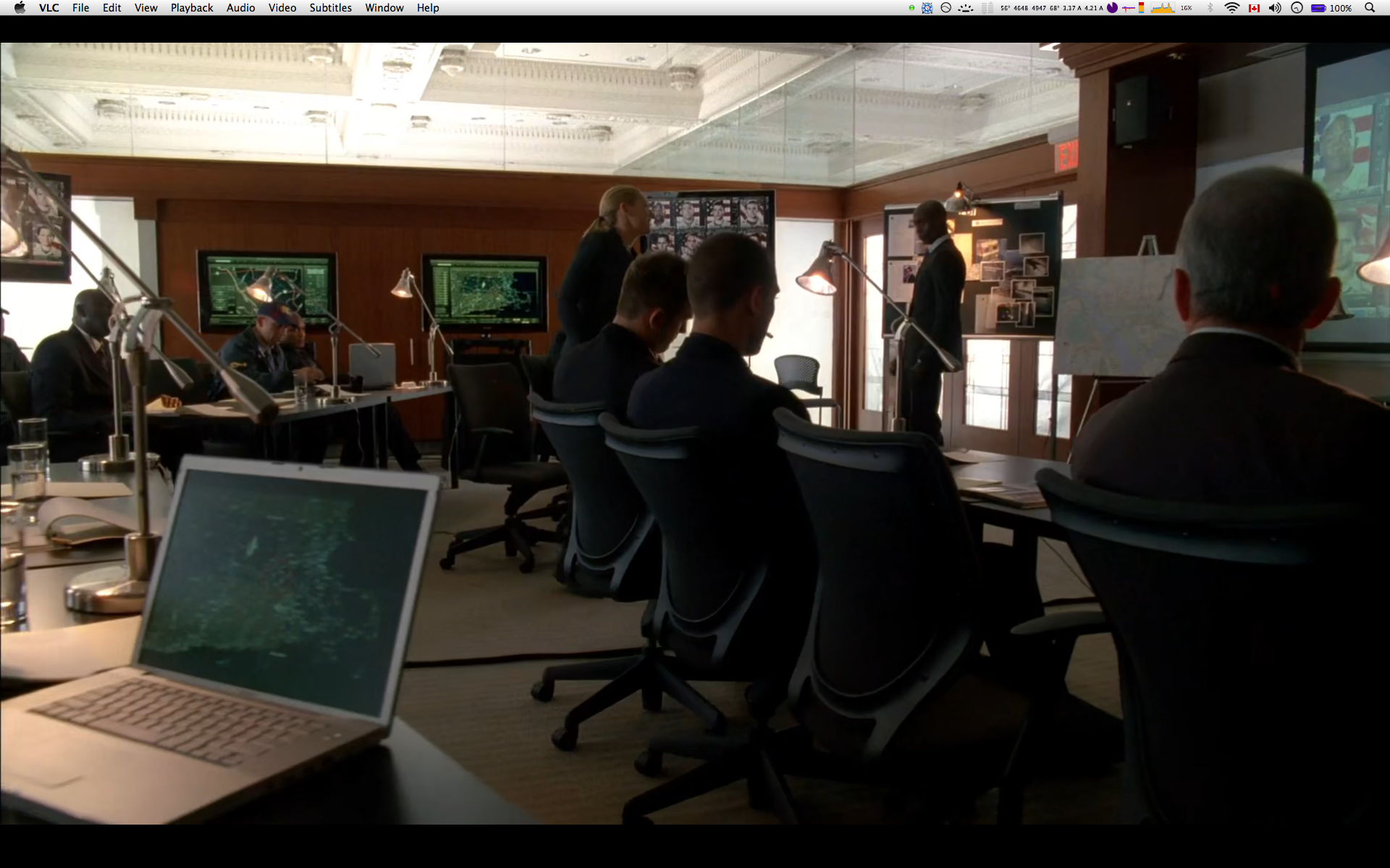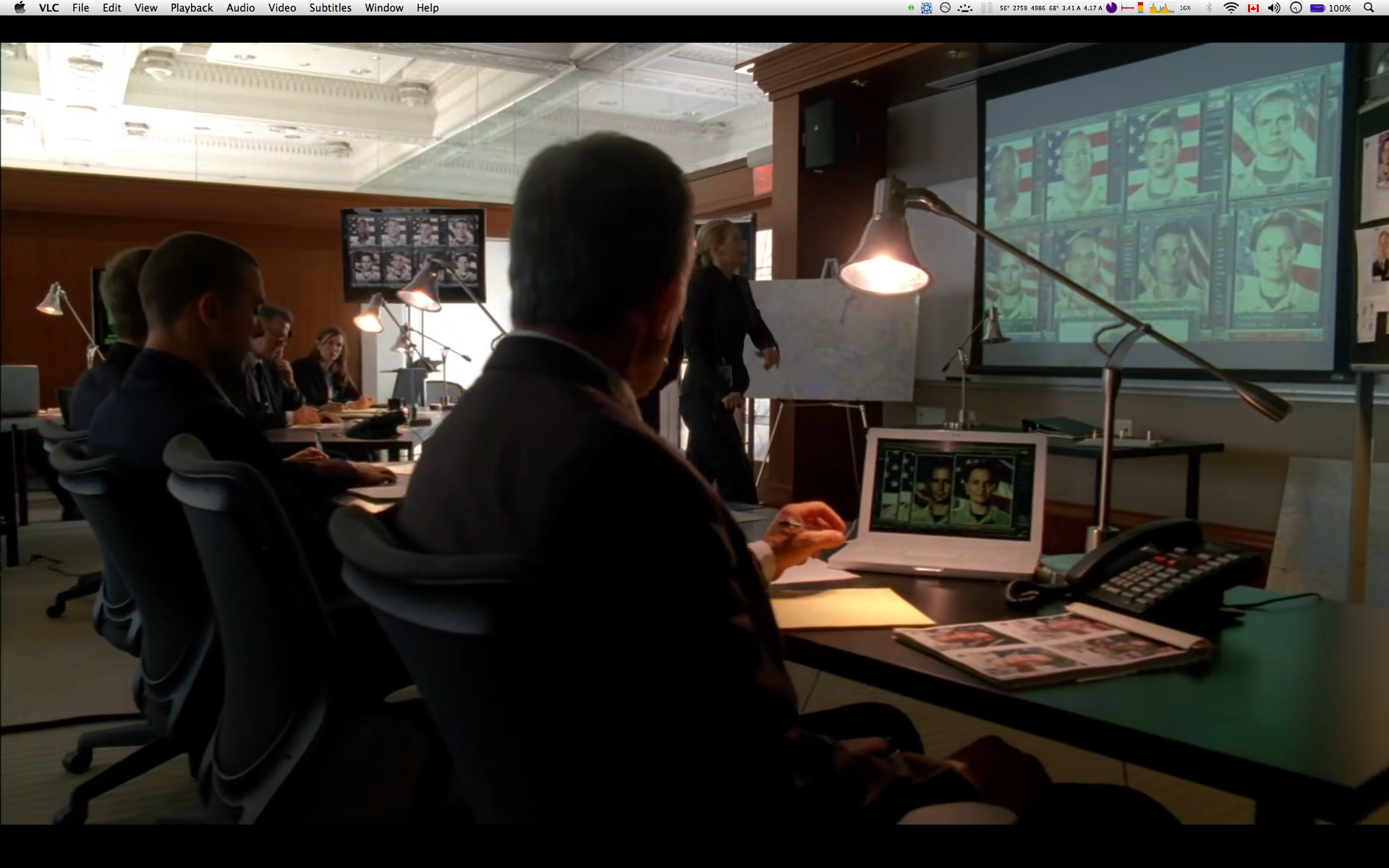 Fringe, Season 3, Episode 8 (“Entrada”), that moment when Peter Bishop grabs the 2009 17" unibody MacBook Pro which isn’t his (his is the one in the foreground) in order to guess the password on Fauxlivia’s work laptop whilst Fauxlivia sleeps. It’s running “Windows”.