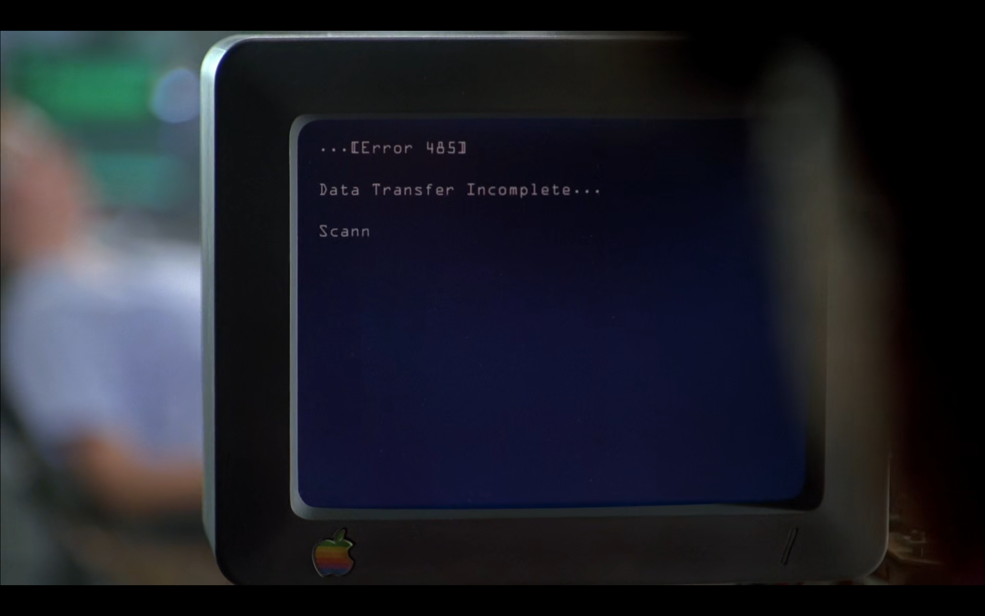 Inexplicably, that heavily modified G5 was connected, somehow, to an Apple IIc display, whose case is painted black (similar to the Bell & Howell Apple ][+ and probably a wink-nod to that particular model, given the very particular context of the plot):View attachment 1924889